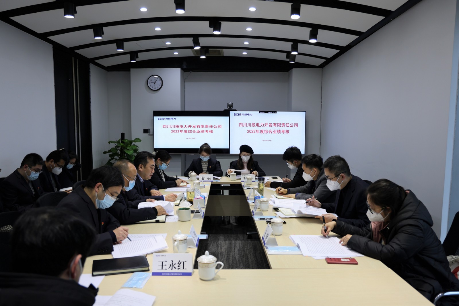 在考核過程中,各企業黨委(黨總支)書記代表企業作了述職、述責、述廉工作報告,全面匯報了全年生產經營數據、重點工作完成情況等,從中總結經驗、查找不足、分析原因、尋找解決方案,同時,對2023年的企業發展做出了規劃;班子成員分別進行了年度個人述職、述責、述廉匯報;與會人員對企業黨建工作、企業經營班子綜合素質等進行了民主測評;各考核工作小組分別與各企業部分班子成員、員工代表等進行了談心談話,并代表川投能源向各企業困難職工送上了新春的慰問祝福。