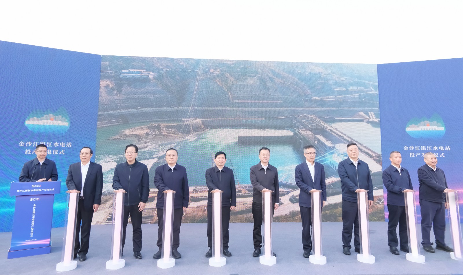 上午9時(shí)許,隨著儀式現(xiàn)場下達(dá)首臺(tái)機(jī)組開機(jī)發(fā)電指令,吳群剛、吳曉曦、范繼躍、李文志、林建國、李仁杰等領(lǐng)導(dǎo)按下啟動(dòng)柱,共同啟動(dòng)金沙江銀江水電站投產(chǎn)發(fā)電,標(biāo)志著該水電站提前一年實(shí)現(xiàn)投產(chǎn)發(fā)電目標(biāo)。