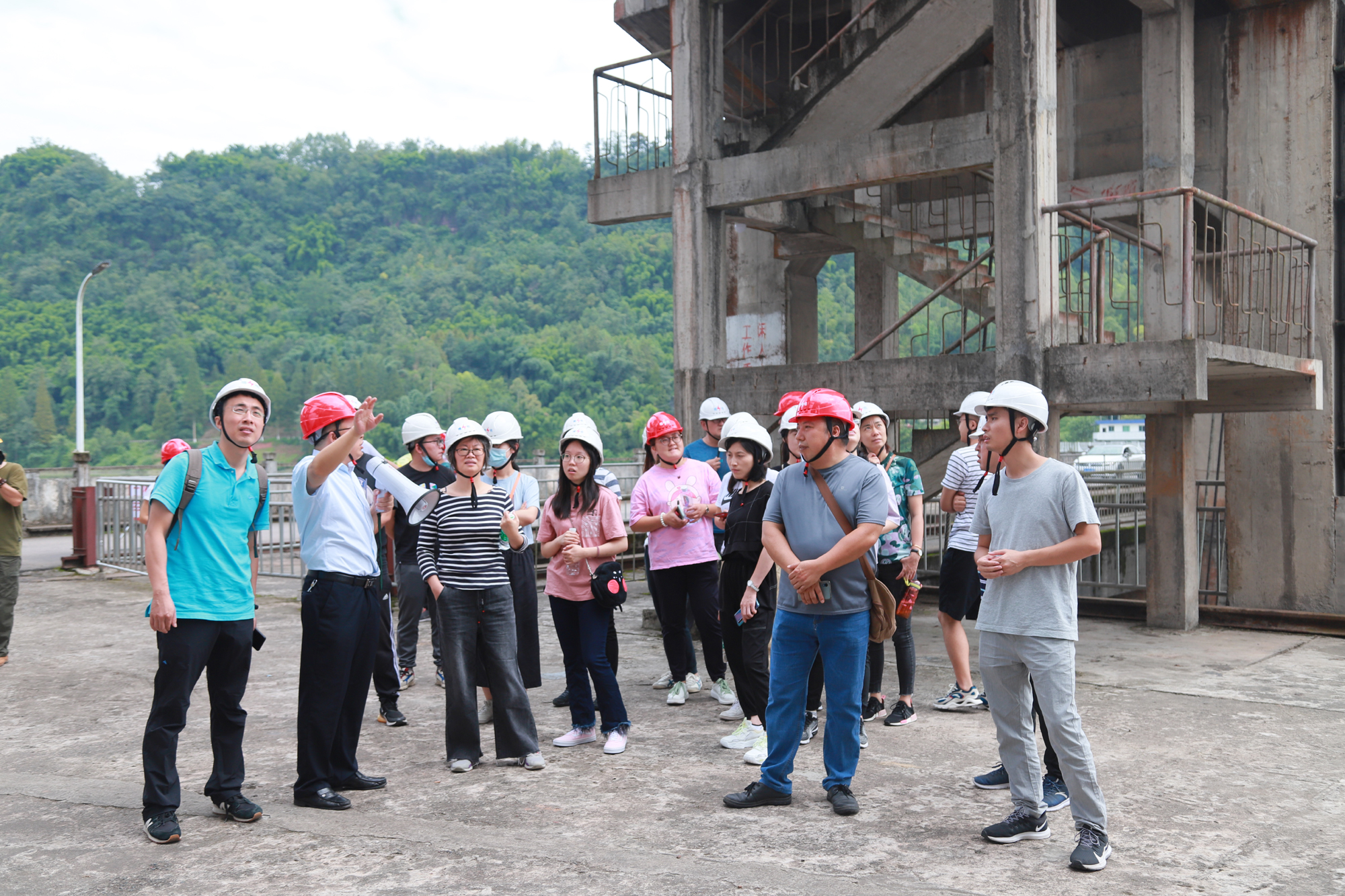 活動中,全體參訓人員實地調研了槽漁灘水電站和大壩、庫區,學習了解水電站從引水樞紐——水機運轉——并網發電——輸出電能等各個環節相輔相成的作用關系;了解包括槽漁灘水電站在內的新近收購水電資產主汛期后運營狀況,深度考察具有發電、灌溉、旅游、養殖、防洪綜合利用的槽漁灘水利樞紐工程。在槽漁灘電廠籃球場及庫區空地,川投能源拓展工作組因地制宜,策劃設計了別具一格的素質拓展培訓。結合“不忘初心 牢記使命”主題教育內容,通過“卡片密令”將參訓人員隨機分為4組,分別為“不忘”組、“初心”組、“牢記”組和“使命”組,通過破冰融合、團建展示、定向挑戰等活動,學員們收獲頗豐、受益良多。