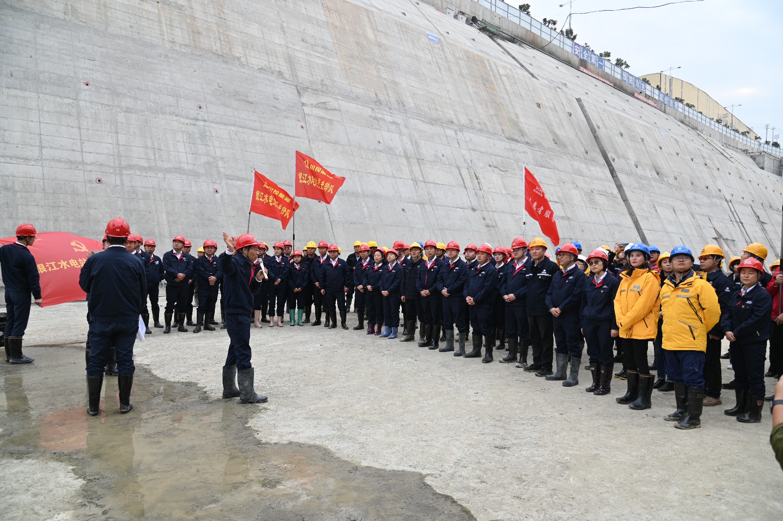 在銀江水電站導(dǎo)流明渠過流和大江截流來臨之際,為持續(xù)推進(jìn)“我為群眾辦實(shí)事”活動(dòng)走深走實(shí),不斷激勵(lì)黨員同志不忘初心、奮勇前進(jìn),12月2日,攀水電公司黨總支組織開展了“我為銀江辦實(shí)事”主題黨日活動(dòng)。川投能源副總經(jīng)理、攀水電公司黨總支書記、董事長徐孝剛在導(dǎo)流明渠基坑講授微黨課,并帶領(lǐng)大家開展工地大掃除,公司全體黨員、職工及各參建單位聯(lián)建支部黨員共100余人參加本次活動(dòng)。