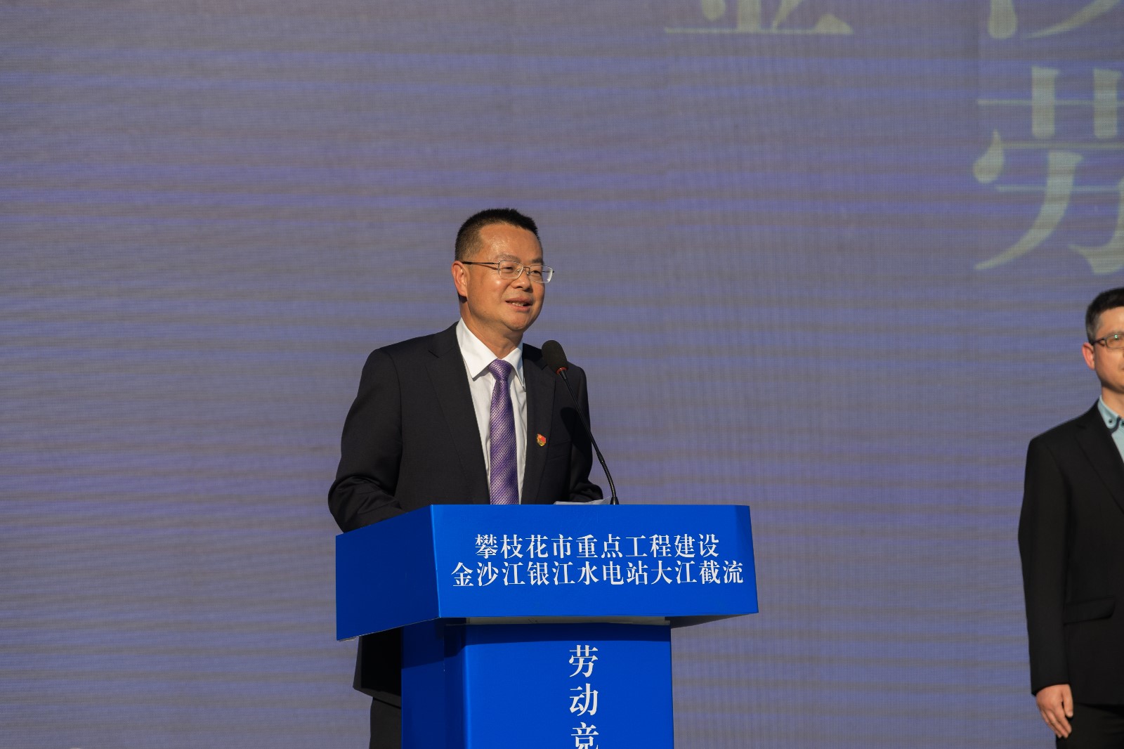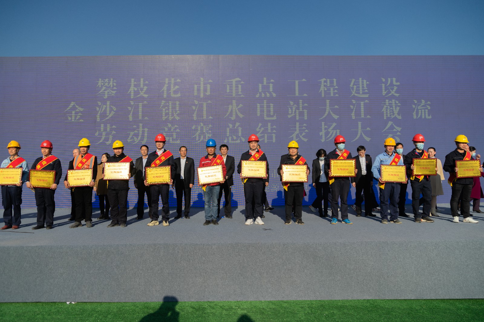 會議首先由川投能源副總經理、攀水電公司黨總支書記、董事長徐孝剛作大江截流勞動競賽總結報告,在攀枝花市重點工程建設勞動競賽的安排部署下,通過開展“勠力奮戰三百天、打贏截流攻堅戰”等勞動競賽活動,取得了提前一年實現大江截流良好成績。公司黨總支委員、總經理吳巍嶼宣讀了《攀枝花市總工會關于表揚金沙江銀江水電站大江截流勞動競賽優秀集體、優勝班組、先進個人的決定》,與會領導共同為受表彰的10個優秀集體、13個優勝班組、30名先進個人授牌頒獎并頒發證書,獲獎的先進集體和先進個人代表分別作了發言。