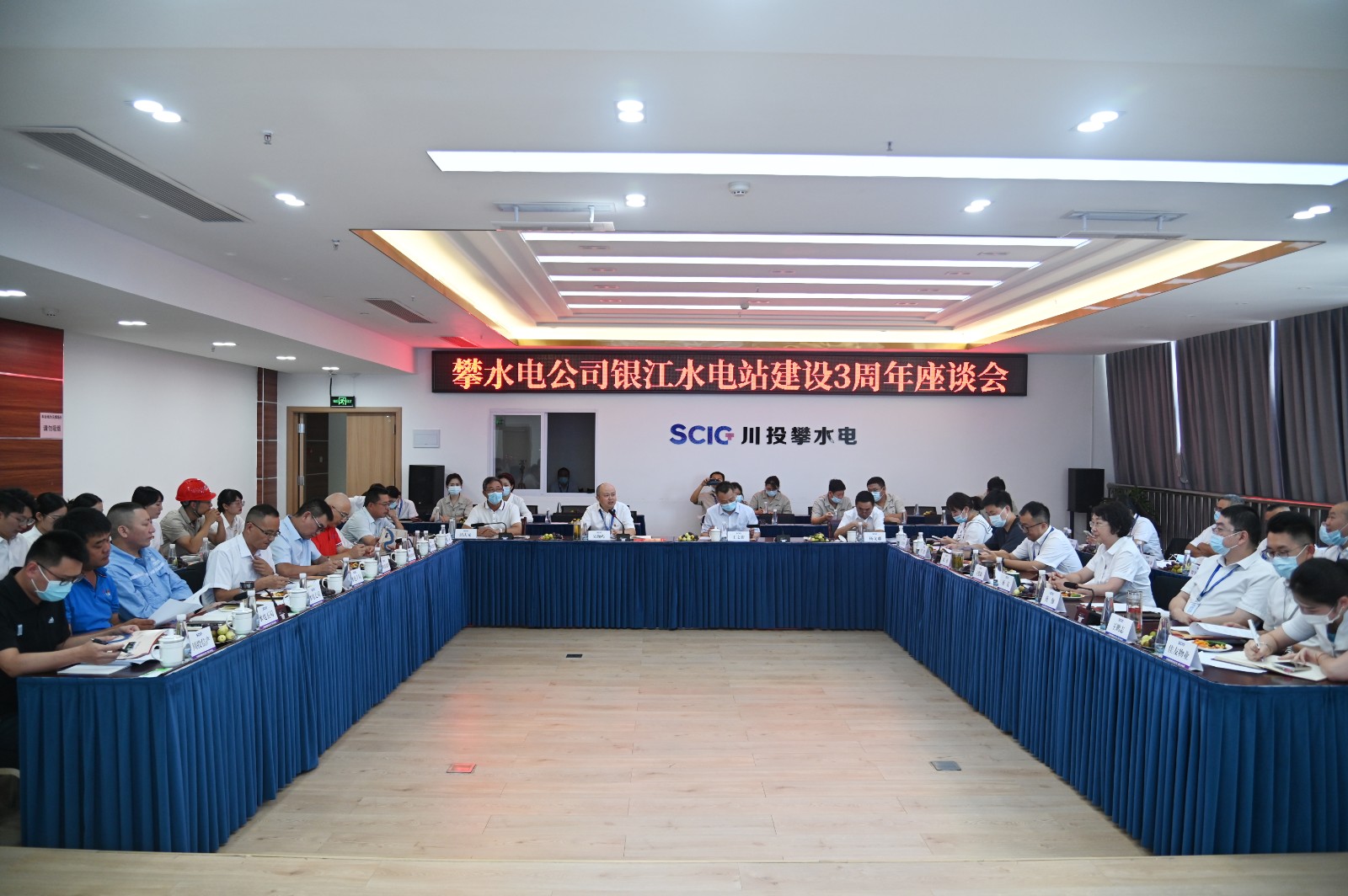 時光荏苒,歲月如梭。在攀水電公司深入學習貫徹習近平總書記來川視察重要指示精神和四川省第十二次黨代會精神的重要時期,2022年7月7日下午,攀水電公司在攀枝花組織召開了銀江水電站建設三周年座談會,股東單位代表、攀水電公司、攀新能源公司及銀江水電站主要參建單位負責人、員工代表共計40余人參加座談,公司黨總支委員、總經理吳巍嶼主持會議。