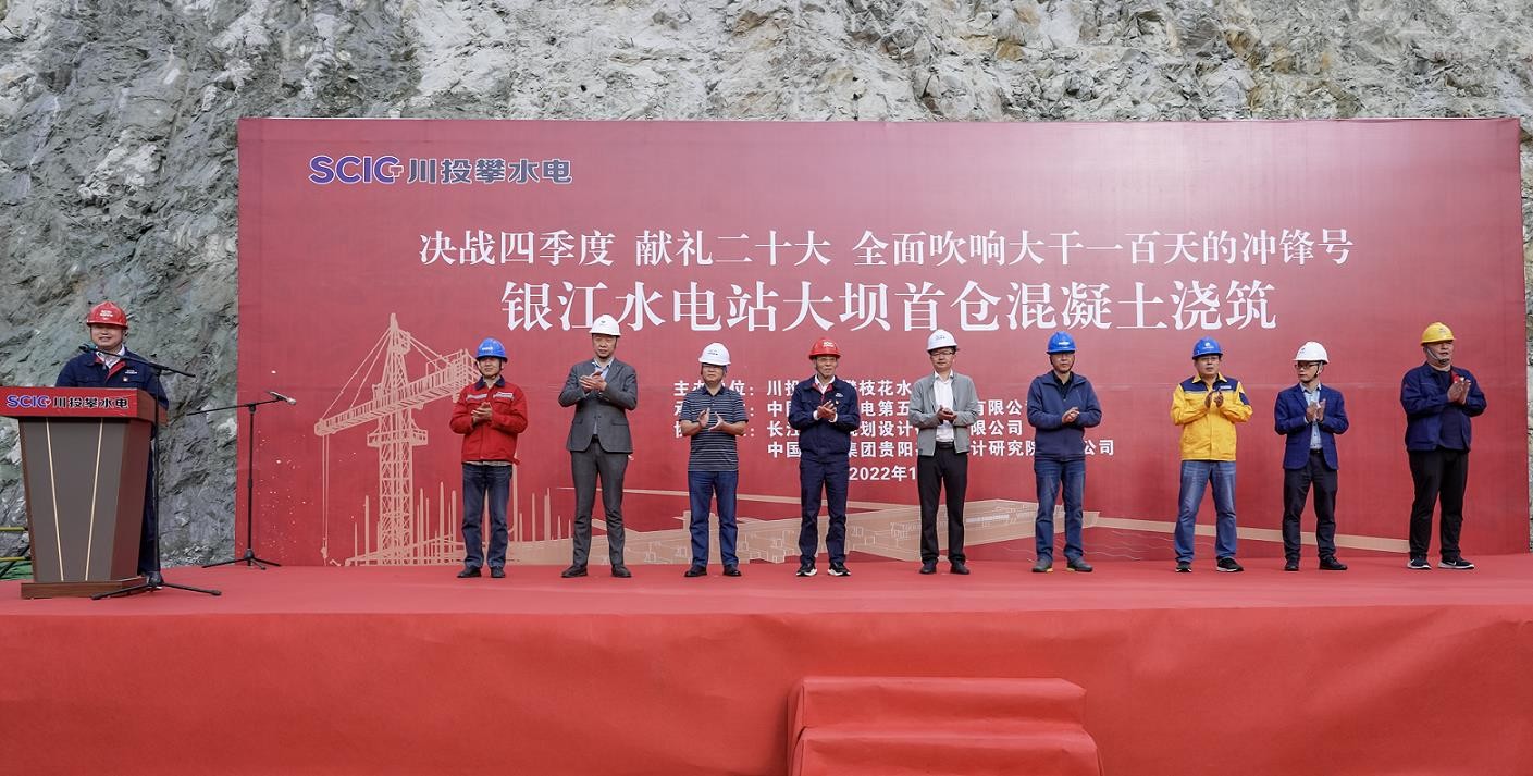 自黨的二十大勝利召開以來,攀水電公司深入學習黨的二十大精神,切實做好學習消化、理解深化、運用轉化“三篇文章”,以迎難而上的韌勁、攻堅克難的拼勁、只爭朝夕的干勁,全力推進省委省政府和川投集團、川投能源關于“決戰四季度、大干一百天”的重要決策部署,全力沖刺全年各項目標任務,于11月5日提前30天開始銀江水電站大壩首倉混凝土澆筑。