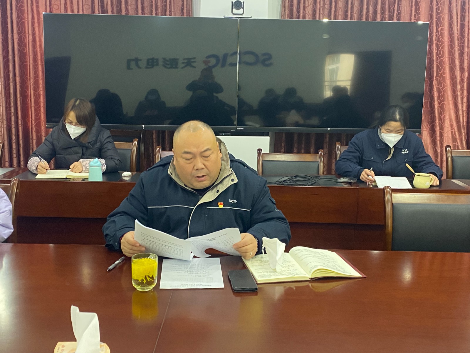 為全面掀起學(xué)習(xí)宣傳貫徹黨的二十大精神熱潮,推動(dòng)黨的二十大精神走深走實(shí),12月20日,天彭電力黨總支召開2022年第12次中心組學(xué)習(xí)(擴(kuò)大)會(huì),黨總支書記、董事長(zhǎng)、總經(jīng)理陳忠作黨的二十大精神專題宣講報(bào)告,公司領(lǐng)導(dǎo)班子、黨員干部、關(guān)鍵崗位人員參加學(xué)習(xí)。