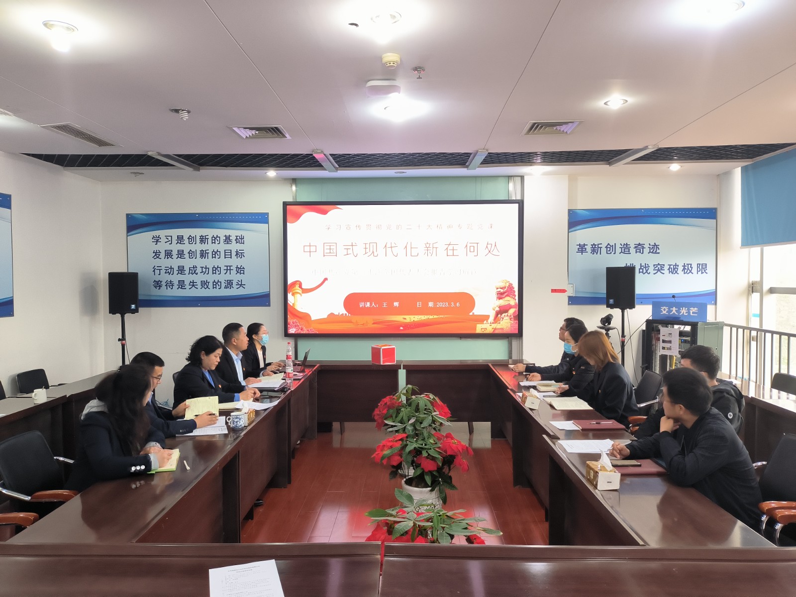 王輝詮釋了中國式現代化的內涵和特征,引導大家深刻領會新時代新征程中國共產黨以中國式現代化全面推進中華民族偉大復興的使命任務,深刻領會實施科教興國、完善科技創新體系、實施創新驅動發展的戰略部署。他強調要把學習貫徹黨的二十大報告精神作為支部當前和今后一個時期首要的政治任務,全體黨員要把二十大精神同公司當前各項工作緊密結合起來,貫徹公司黨總支“黨建引領為抓手、抓好黨建促發展”的思路,結合實際堅持以創新融合不斷推動黨建工作與業務工作高度融合,切實把二十大精神貫徹到研發創新中去,充分發揮黨支部戰斗堡壘、黨員先鋒模范作用。