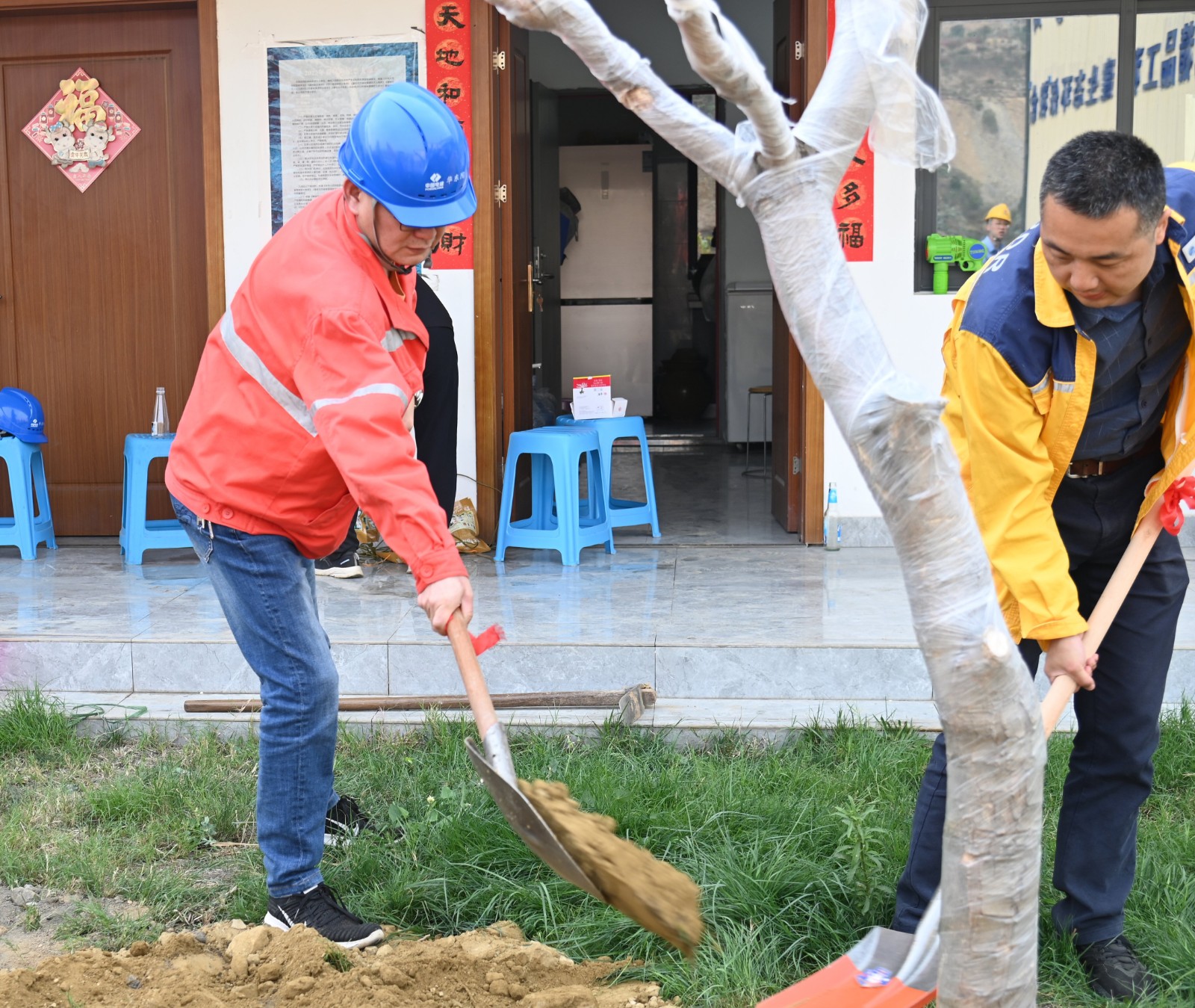 隨后,在金河村芒果專家的專業(yè)輔導(dǎo)下大家積極動手、挖坑種樹,各支部責(zé)任田呈現(xiàn)一派緊張有序的勞動景象,參加植樹活動的黨員、職工個個熱情洋溢、干勁十足,有的拿鐵鍬、有的運(yùn)樹苗,你追我趕,每個環(huán)節(jié)認(rèn)真到位,到處都是忙碌的身影和勞動的歡聲笑語,各支部相繼完成植樹目標(biāo),并在專家的驗(yàn)收后簽名、掛牌,一顆顆共建之樹在大黨建宣傳陣地安家落戶。