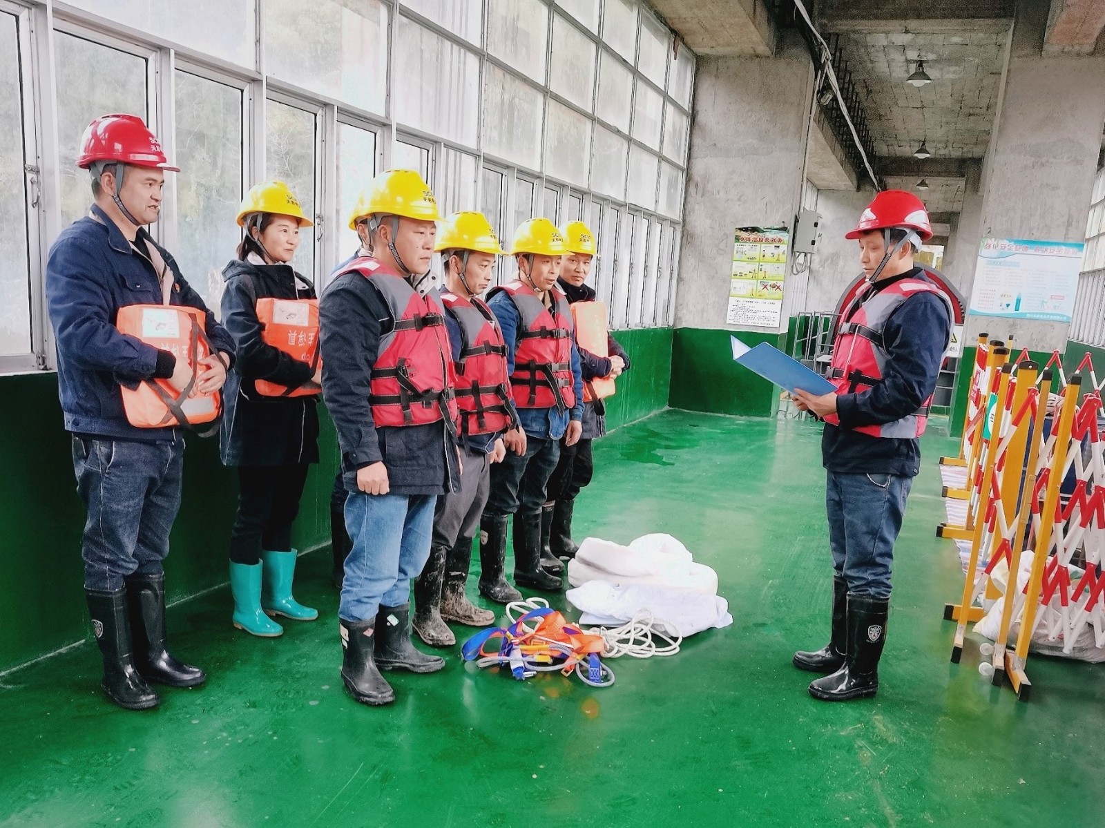 本次演練是大壩值班人員應(yīng)對(duì)水庫(kù)上游突發(fā)水污染事件的現(xiàn)場(chǎng)應(yīng)急處置演練,以現(xiàn)場(chǎng)模擬操作的形式開(kāi)展,全體參演員工準(zhǔn)時(shí)到位,應(yīng)急演練在鳳鳴湖水庫(kù)大壩正式啟動(dòng)。演練場(chǎng)景系模擬鳳鳴湖水庫(kù)上游意外發(fā)生油污染源流入鳳鳴湖庫(kù)區(qū),危及飲用水源安全的“事件”。值班人員發(fā)現(xiàn)險(xiǎn)情后,迅即啟動(dòng)應(yīng)急預(yù)案,一聲令下各路人馬齊齊奔赴各自戰(zhàn)斗崗位:一路緊急關(guān)閉進(jìn)水閘控制源頭;一路火速在水面完成鋪設(shè)吸油索、吸油紙攔截油污;一路則同步將“險(xiǎn)情”逐級(jí)上報(bào)公司領(lǐng)導(dǎo)和政府主管部門。在大家冷靜沉著、嚴(yán)密配合、協(xié)同處置下,庫(kù)區(qū)污染物得到精準(zhǔn)、迅速及有效控制,龍門山麓這一汪碧波得以安然度險(xiǎn)。