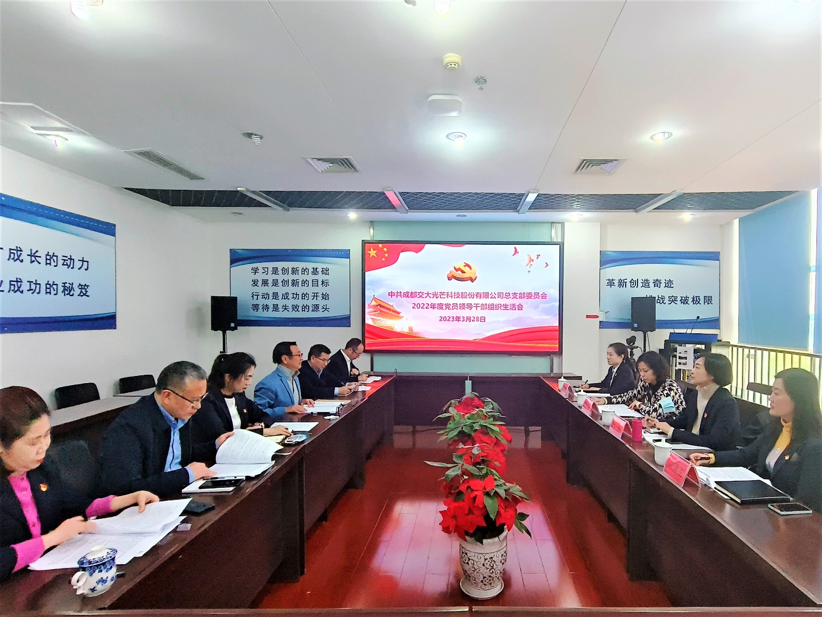 根據川投能源黨委《關于開展所屬公司2022年度民主生活會及基層黨組織生活會和民主評議黨員督導工作的通知》要求,3月28日下午,交大光芒黨總支召開2022年度黨員領導干部組織生活會。川投能源黨委委員、財務總監、督導組組長劉好率隊參會督導。公司黨總支書記、總經理劉成輝主持會議。