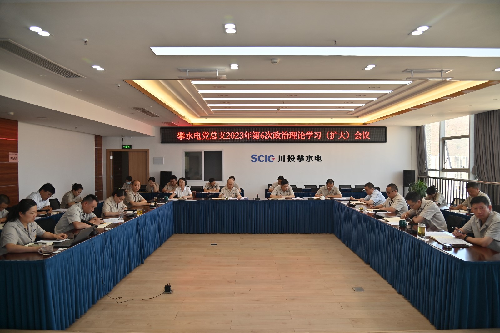 5月28日,攀水電黨總支在2620會議室召開了2023年第6次政治理論學習(擴大)會議,本次學習主要包括第一議題學習、上級指示精神、法治專題、黨史學習教育、安全環保、廉政警示教育、主題教育專題研討七個部分。川投能源副總經理、攀水電公司黨總支書記、董事長徐孝剛以視頻方式主持會議,黨總支政治理論學習會成員、各部門負責人、其他黨員、統戰對象、入黨積極分子共30余人參加。