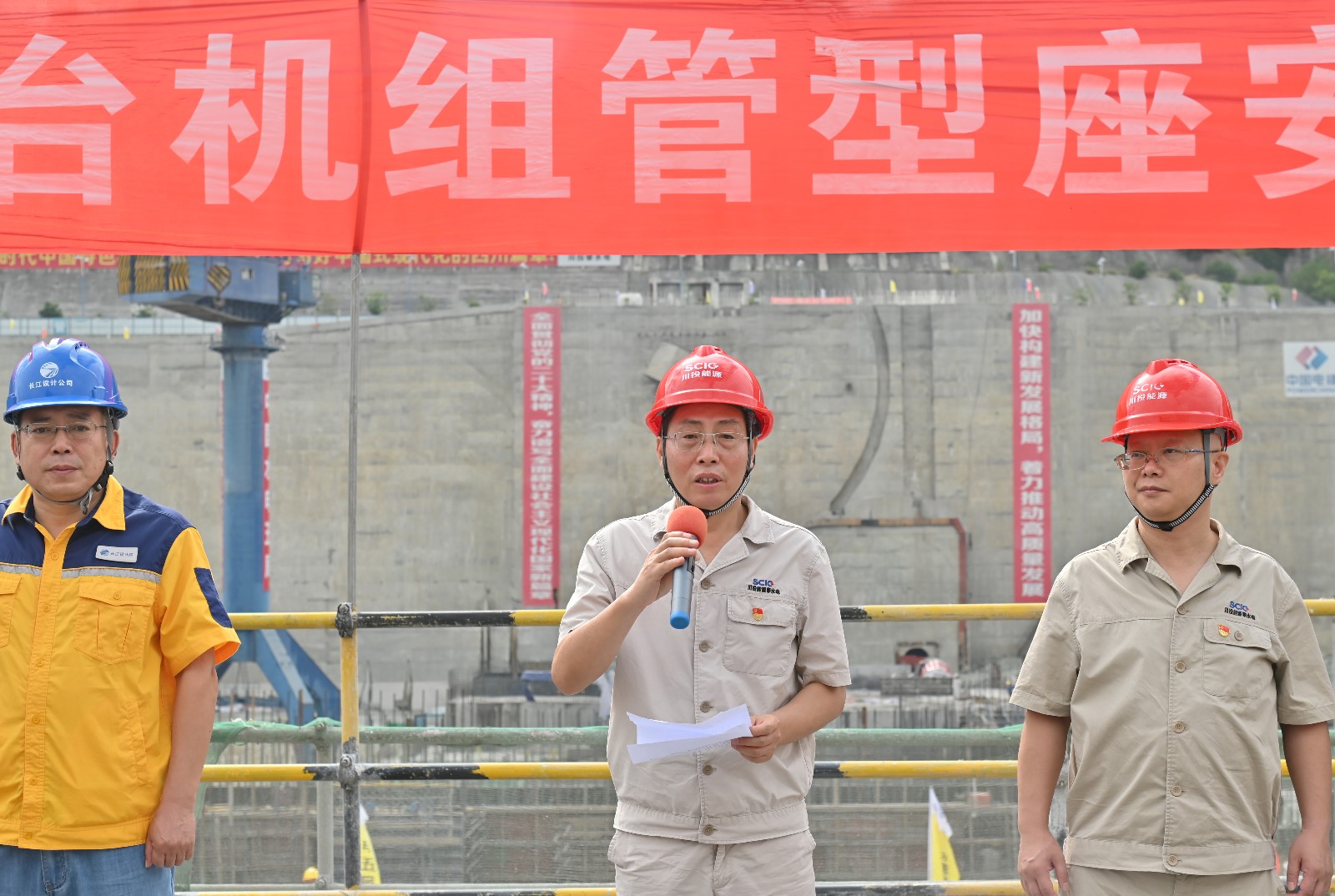 儀式上,徐孝剛對本次儀式作總結(jié)講話,他指出銀江水電站自2019年7月22日開工以來,一個(gè)個(gè)重要目標(biāo)節(jié)點(diǎn)的順利實(shí)現(xiàn),離不開各參建單位緊密配合和辛苦付出,對各參建單位的工作給予高度認(rèn)可和充分肯定,并對后續(xù)工程建設(shè)提出了具體要求。他強(qiáng)調(diào),一是要深入學(xué)習(xí)領(lǐng)會習(xí)近平總書記來川視察重要指示精神和省委第十二屆三次全會精神,全力推動(dòng)在攀水電公司及銀江水電站落地落實(shí)、見行見效。二是要著力打造銀江精神,樹立標(biāo)桿,做出成績,持續(xù)發(fā)揚(yáng)工程人戰(zhàn)天斗地的精神。三是要堅(jiān)決貫徹一切為現(xiàn)場服務(wù)的理念,各參建單位要緊密配合,不遺余力做實(shí)做細(xì)現(xiàn)場各項(xiàng)工作,切實(shí)保障各節(jié)點(diǎn)目標(biāo)如期實(shí)現(xiàn),力爭實(shí)現(xiàn)2024年底首臺機(jī)組具備投產(chǎn)發(fā)電條件目標(biāo),為2025年底全部機(jī)組投產(chǎn)發(fā)電夯實(shí)基礎(chǔ)。