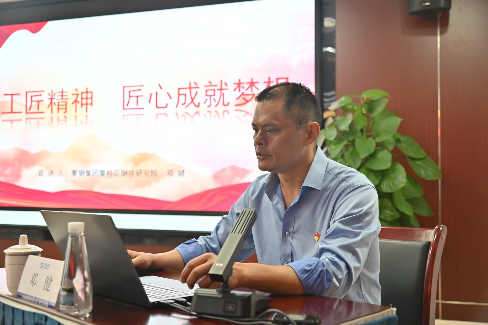 本次宣講會邀請到了“東區工匠”“電焊技術大比武第一名”、“三高人才”“攀鋼技能拔尖人才”榮譽稱號獲得者,攀研院電焊高級技師鄧健為廣大職工進行宣講。鄧健主要從事科研及鋼軌等材料焊接操作試驗和重軌焊接實驗室日常管理工作,宣講大會上,他結合黨的二十大精神和省委十二屆三次全會精神,用質樸的語言、真摯的情感生動講述了自己立足崗位、艱苦奮斗的工作歷程和典型事跡,并號召廣大職工學習和領悟勞模精神、勞動精神、工匠精神的深刻內涵,教育引導大家立足崗位、苦練本領、創先爭優,努力成為行業骨干、青年先鋒。