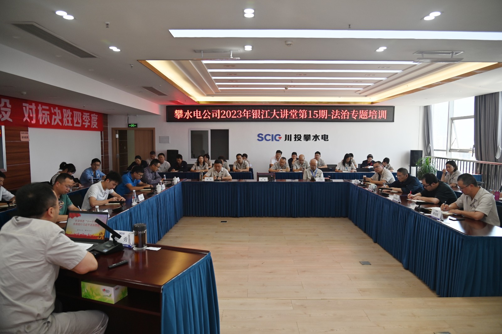 為深入學(xué)習(xí)宣貫黨的二十大精神,認(rèn)真貫徹落實(shí)習(xí)近平法治思想,積極落實(shí)省國資委、川投集團(tuán)、川投能源關(guān)于“送法進(jìn)企業(yè)”活動要求,進(jìn)一步提升企業(yè)依法治理和合規(guī)經(jīng)營能力,切實(shí)增強(qiáng)廣大干部職工法律意識和法治素養(yǎng),2023年10月31日,公司精心組織開展了第15期銀江大講堂——法治專題培訓(xùn),公司在攀領(lǐng)導(dǎo)、員工及參建單位人員共計40余人參加培訓(xùn)。