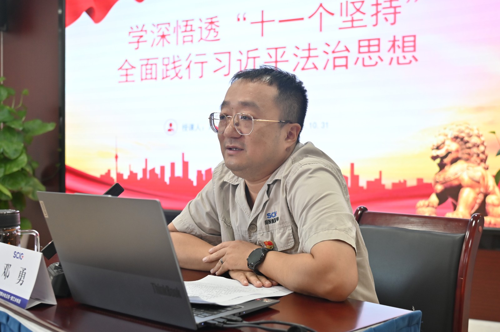 會上,公司黨總支副書記、董事會秘書、工會主席鄧勇以“學(xué)深悟透‘十一個堅持’,全面踐行習(xí)近平法治思想”為題,從習(xí)近平法治思想的核心理念、總體部署、關(guān)鍵舉措、重要成果四個方面做了系統(tǒng)闡述,詳細(xì)解讀了學(xué)深悟透“十一個堅持”的內(nèi)在邏輯和豐富內(nèi)涵,進(jìn)一步深化了公司員工對習(xí)近平法治思想的理解和認(rèn)識。