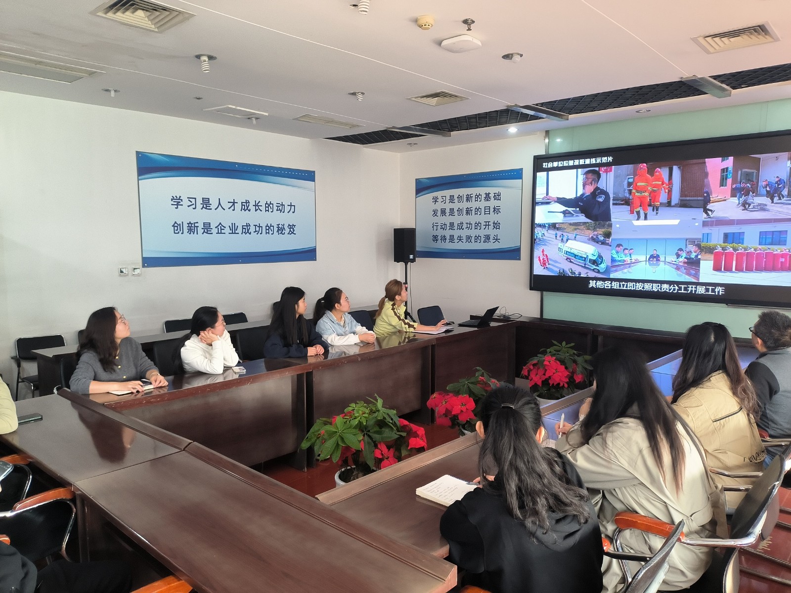 在演練準備階段,公司組織應急疏散行動組成員、應急救援行動組及安全環保部人員集中學習。通過消防疏散演練方案、消防安全應急處理基礎知識、應急機構職責和觀看警示教育、交流心得體會等方式開展消防安全培訓,并對本次消防演練進行部署,進一步提升自救、營救、疏散能力,以便在發生緊急情況時能快速反應,高效開展救援行動。