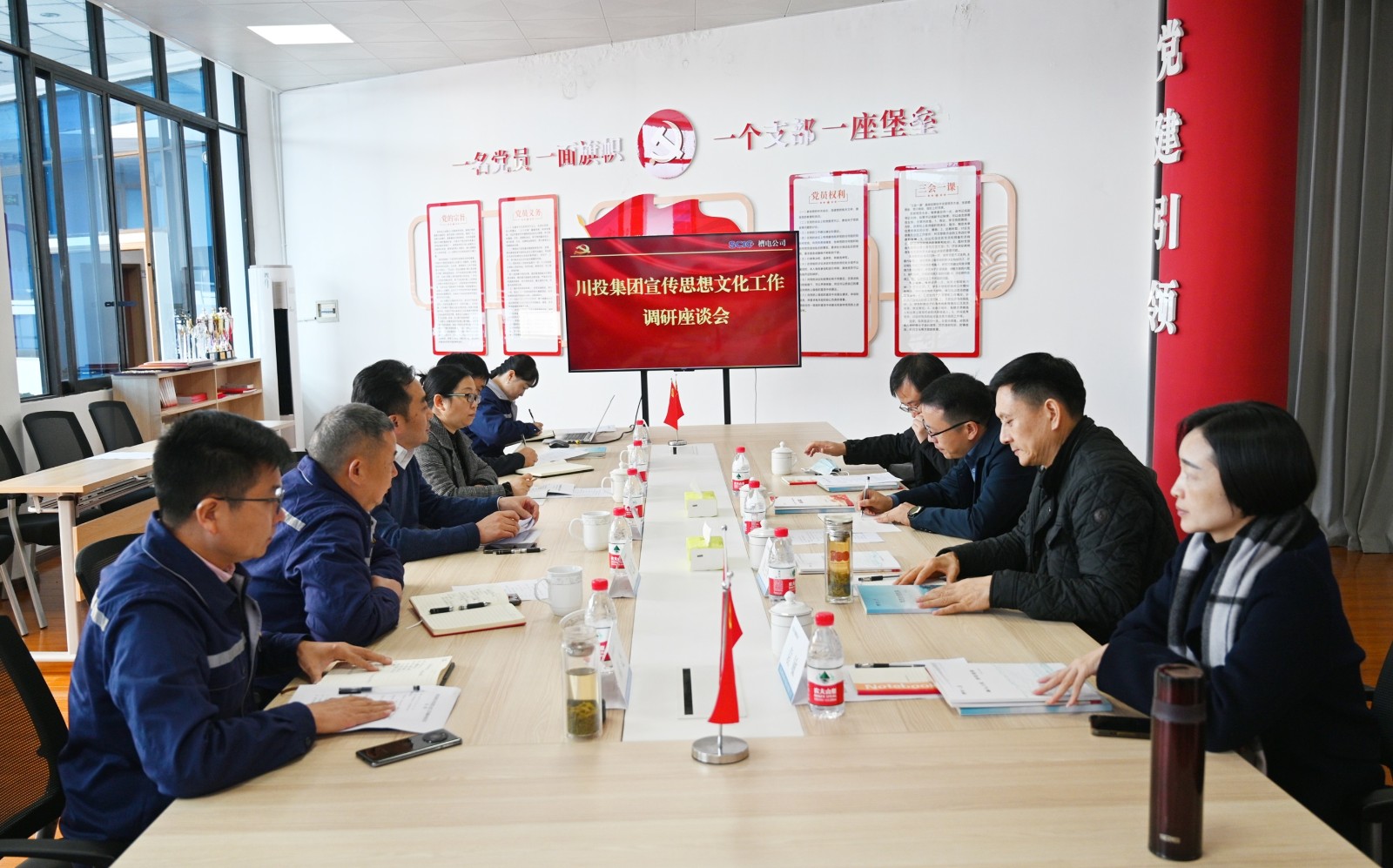在宣傳思想文化工作調研座談上,觀看了展現川投電力黨委特色黨建工作的微電影《輕騎兵在行動》和《走好新時代長征路》,楊濤向何金輝一行匯報了川投電力黨委黨建亮點工作和“星光聚力”等黨建品牌創建、企地共建以及理論宣講工作開展情況。何金輝對川投電力黨建工作取得的成績給予充分肯定。他指出,川投電力黨建工作充分體現了“星光聚力”黨建品牌的豐富內涵和精神實質。他要求,川投電力黨委要繼續加強黨建工作,一要持續強化理論學習,特別是加強黨委理論中心組學習,不斷用黨的創新理論成果指導和促進工作,有效推動生產經營高質量發展;二要持續強化意識形態工作,從思想上和行動上與黨中央的各項決策部署保持高度一致,強化責任意識,深入基層單位,扎實做好信訪穩定工作;三要持續加強群團工作,從思想文化宣傳等方面全方位促進安全生產和經營發展,起到凝聚人心、匯聚力量的作用;四要持續發揮國有企業的社會責任,在經營發展、企地共建等工作中不斷總結經驗,樹立企業良好社會形象。