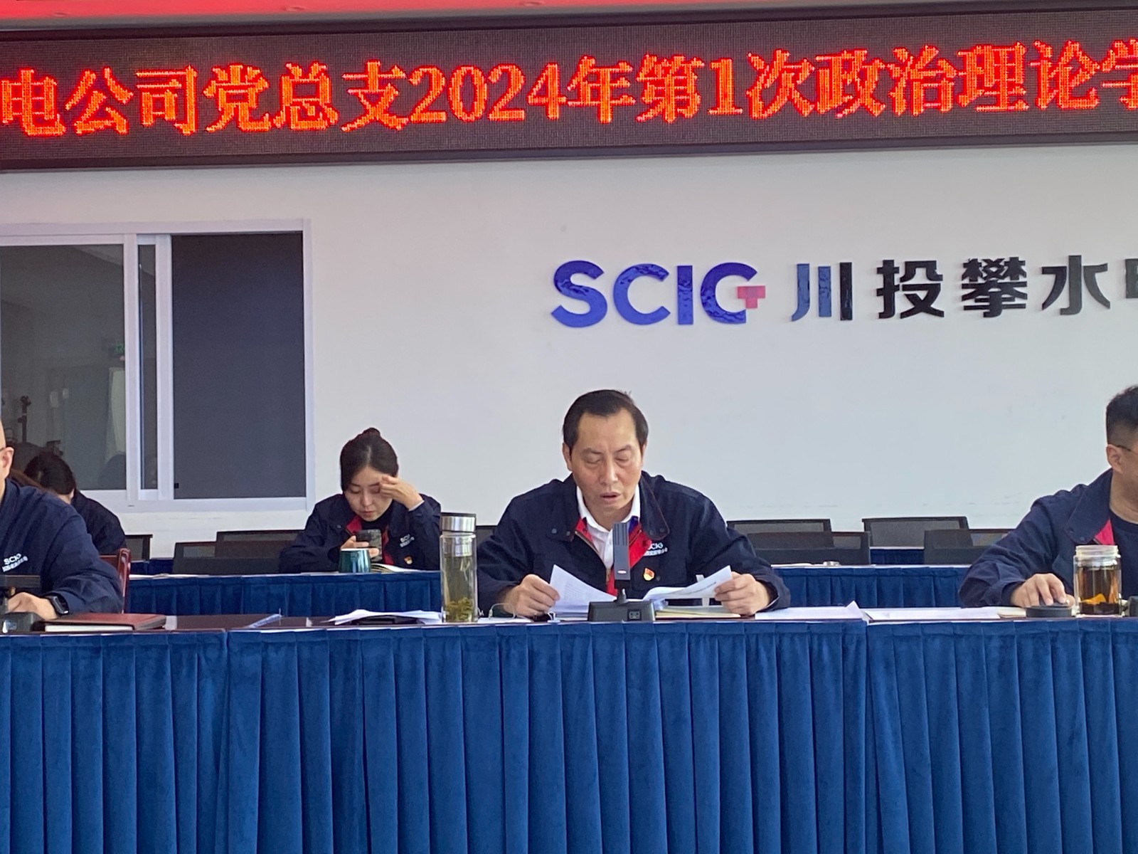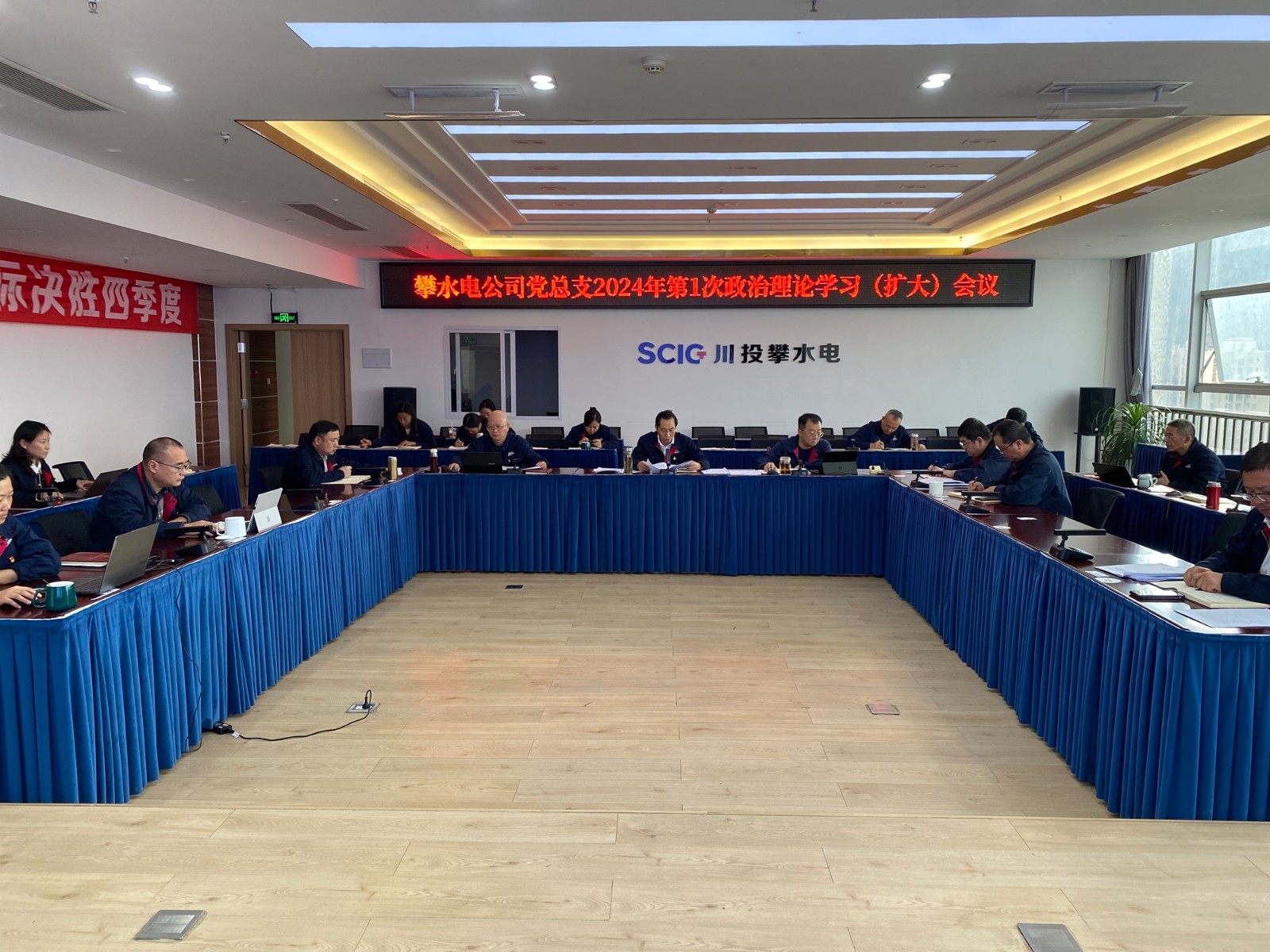 1月27日下午,攀水電黨總支在2620會議室召開了2024年第1次政治理論學習(擴大)會議,本次學習主要包括第一議題學習、上級文件精神、統戰工作、安全環保、廉政警示教育、分享式領學六個部分。會議由川投能源副總經理、攀水電公司黨總支書記、董事長徐孝剛主持,黨總支政治理論學習會成員、全體中干、支部書記、其他黨員、統戰對象、入黨積極分子共30余人參加。