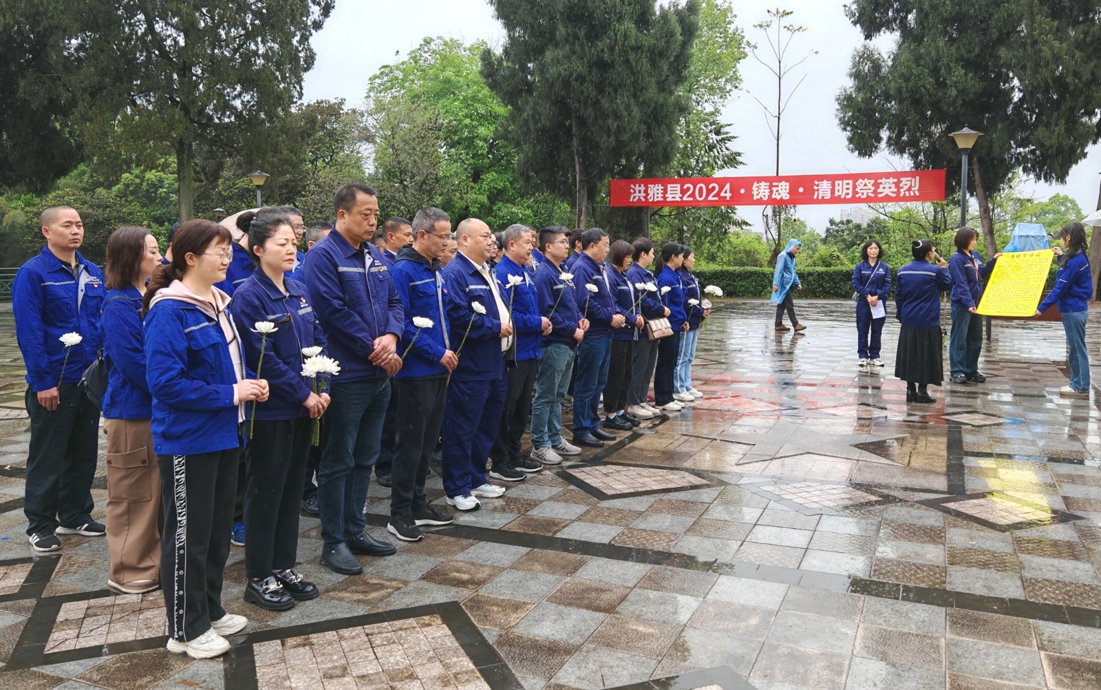 迎著霏霏細雨,全體人員邁著緩緩的步伐來到烈士紀念碑前,大家神情肅穆,向烈士紀念碑敬獻鮮花、致悼詞、行默哀禮,在莊嚴肅穆的儀式中, 深切緬懷革命先烈,向革命先烈致以崇高敬意!