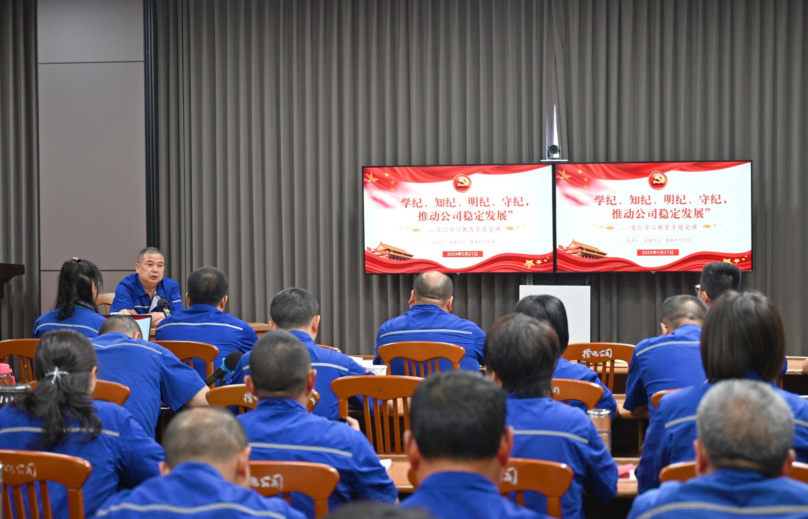 公司黨委書記、董事長何光富以《學紀、知紀、明紀、守紀,推動公司持續穩定高質量發展》為題,從開展黨紀學習教育重在“學紀”,根在“知紀”,貴在“明紀”,成在“守紀”四個方面,為全體支部黨員講授了一堂黨紀學習教育專題黨課。何光富在授課中將黨紀學習教育落實到公司具體工作中,介紹了2024年退休職工社會化管理移交工作進展情況。他要求,公司全體黨員干部要進一步提高政治站位,把思想和行動統一到公司黨委的決策部署上來,把社會化管理移交工作作為公司黨紀學習教育的一個重要實踐,用于檢驗黨紀學習教育的成效。他希望全體黨員干部要積極作為、勇于擔當,心往一處想、勁往一處使,維護公司和諧穩定發展良好局面,為推動公司高質量發展努力奮斗。