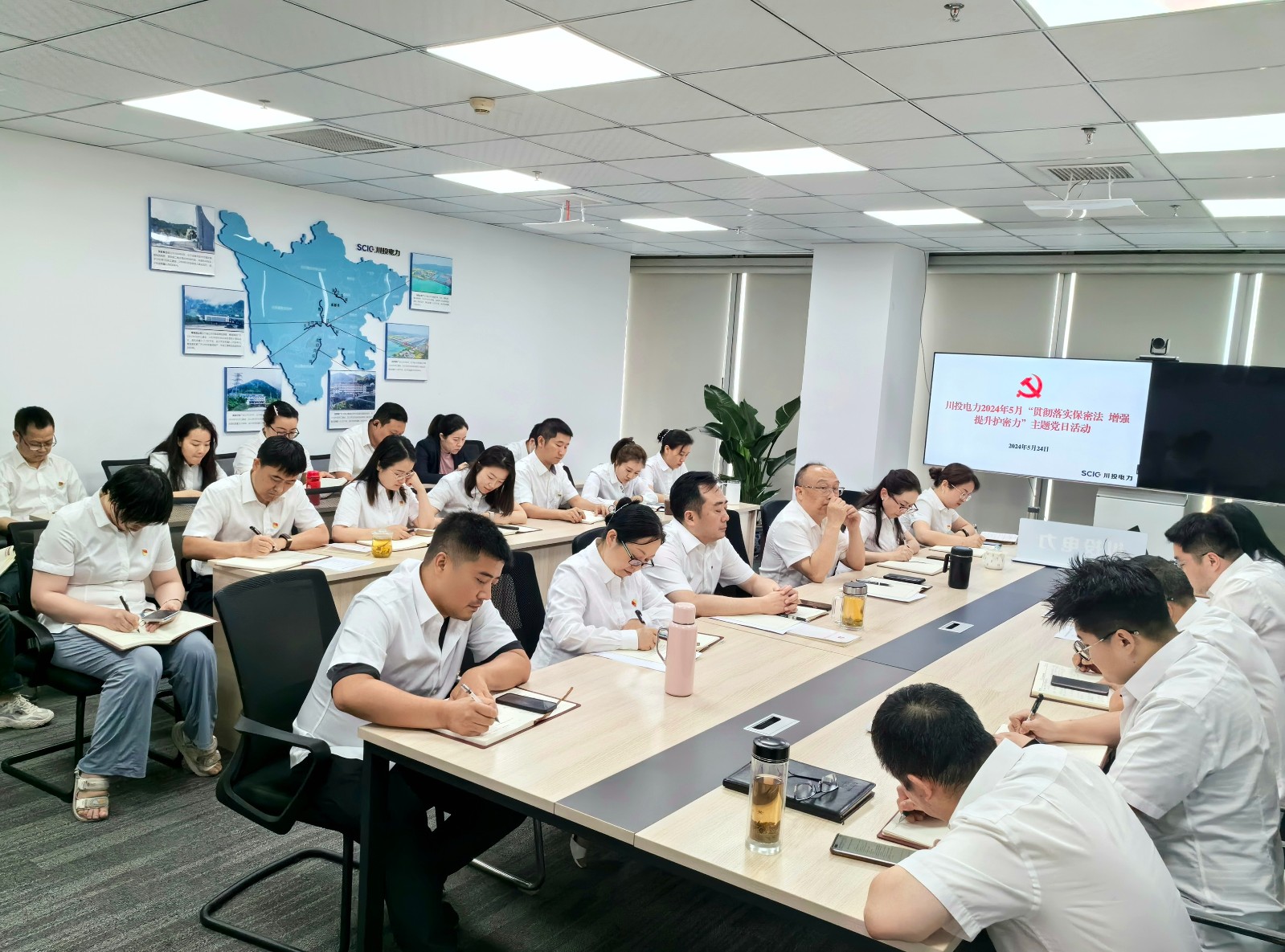 為貫徹落實黨中央關于加強和改進保密工作的決策部署,深入傳達落實習近平總書記就保密工作作出的一系列重要指示批示精神,5月24日,川投電力機關黨支部召開5月“貫徹落實保密法  增強提升護密力”主題黨日活動,并結合黨紀學習教育開展專題學習研討。會議由支部書記李天宏主持,支部全體黨員、入黨積極分子、民主黨派人士參加會議。