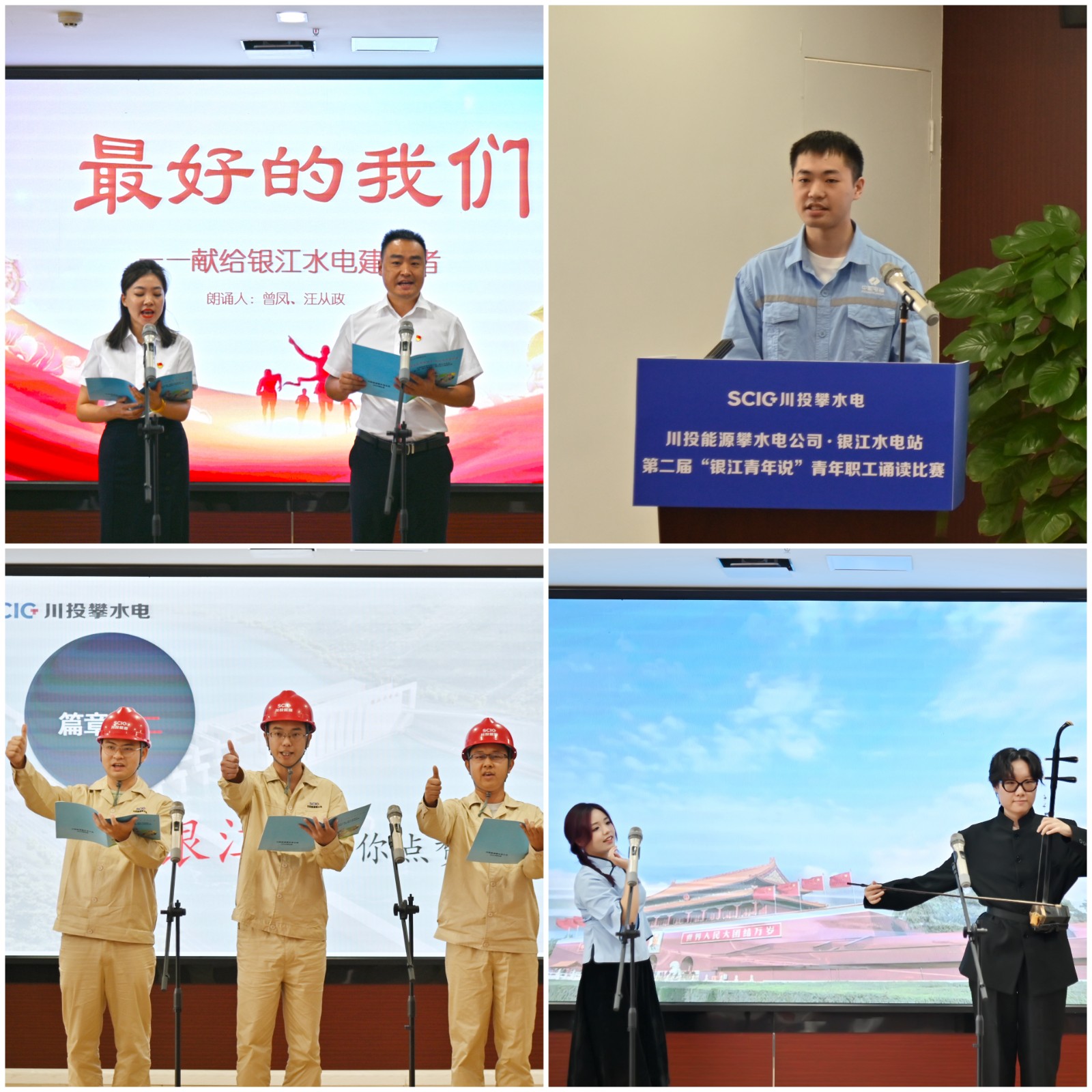 本次比賽以“蓄水發(fā)電加油干,銀江青年顯擔(dān)當(dāng)”為主題,來自公司及參建單位的10組14名選手結(jié)合各自的工作崗位精心創(chuàng)作了誦讀作品,他們中有剛退伍的發(fā)電部新兵,有剛畢業(yè)的財(cái)務(wù)新手,還有久經(jīng)沙場的一線職工,不同崗位、各色服飾、創(chuàng)意滿滿、精彩紛呈。來自水電五局項(xiàng)目部的黃山珊、扈文博身穿中國風(fēng)服裝,手拿傳統(tǒng)樂器二胡,以優(yōu)美的舞姿和深情的誦讀,回顧了歷史長河的中熱血青年,贊美了日夜奮戰(zhàn)在施工一線的銀江青年,充分展現(xiàn)了當(dāng)代青年的文化自信,勇奪比賽第一名;平日里不善言辭、埋頭苦干的工程小伙也勇敢站上講臺,致敬了他們心中“年輕的戰(zhàn)場”,以一段充滿激情的歌聲瞬間把現(xiàn)場氣氛點(diǎn)燃;還有發(fā)電部新入職的小姑娘,外表文靜的她卻有著極強(qiáng)的爆發(fā)力,讓大家刮目相看。