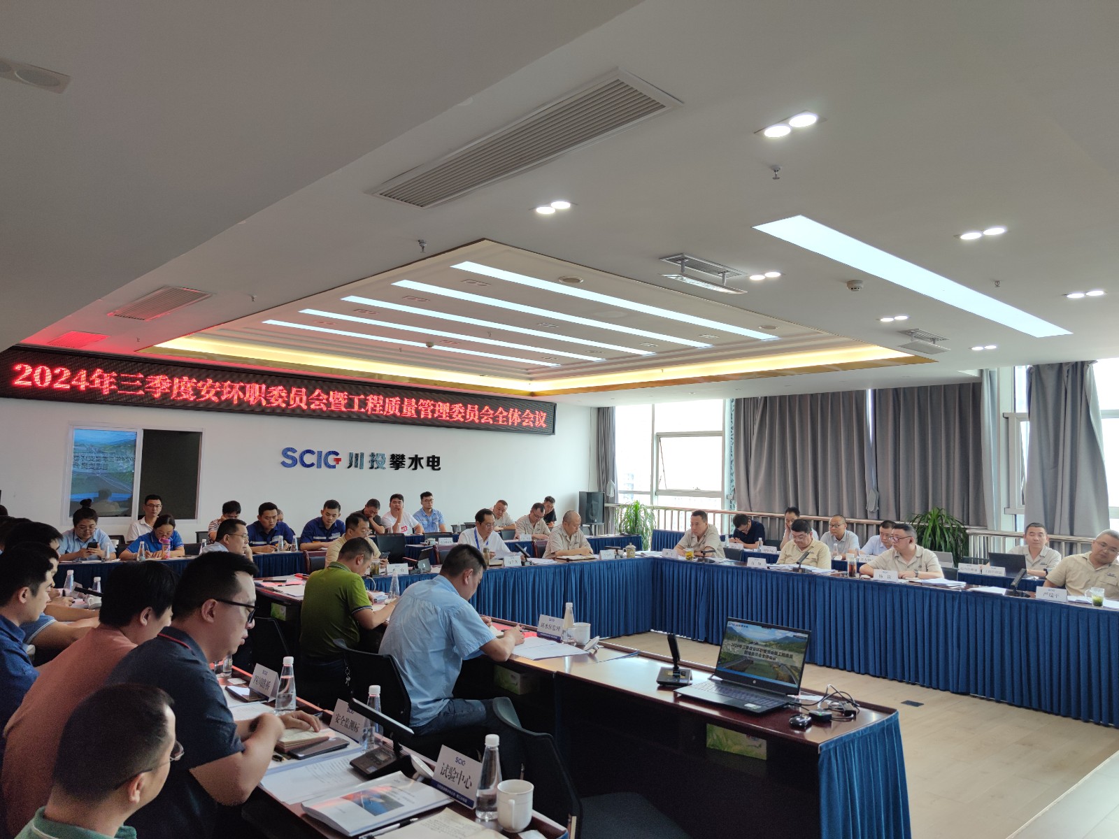 7月15日,在銀江水電站全力沖刺首臺機組發電之際,公司組織召開了2024年三季度工程質量管理委員會全體會議,會議由川投能源副總經理、公司黨總支書記、董事長、質委會主任徐孝剛主持,公司黨總支副書記、總經理、質委會主任吳巍嶼及在攀領導出席會議,公司相關部門及參建單位主管質量負責人共計40余人參加會議。