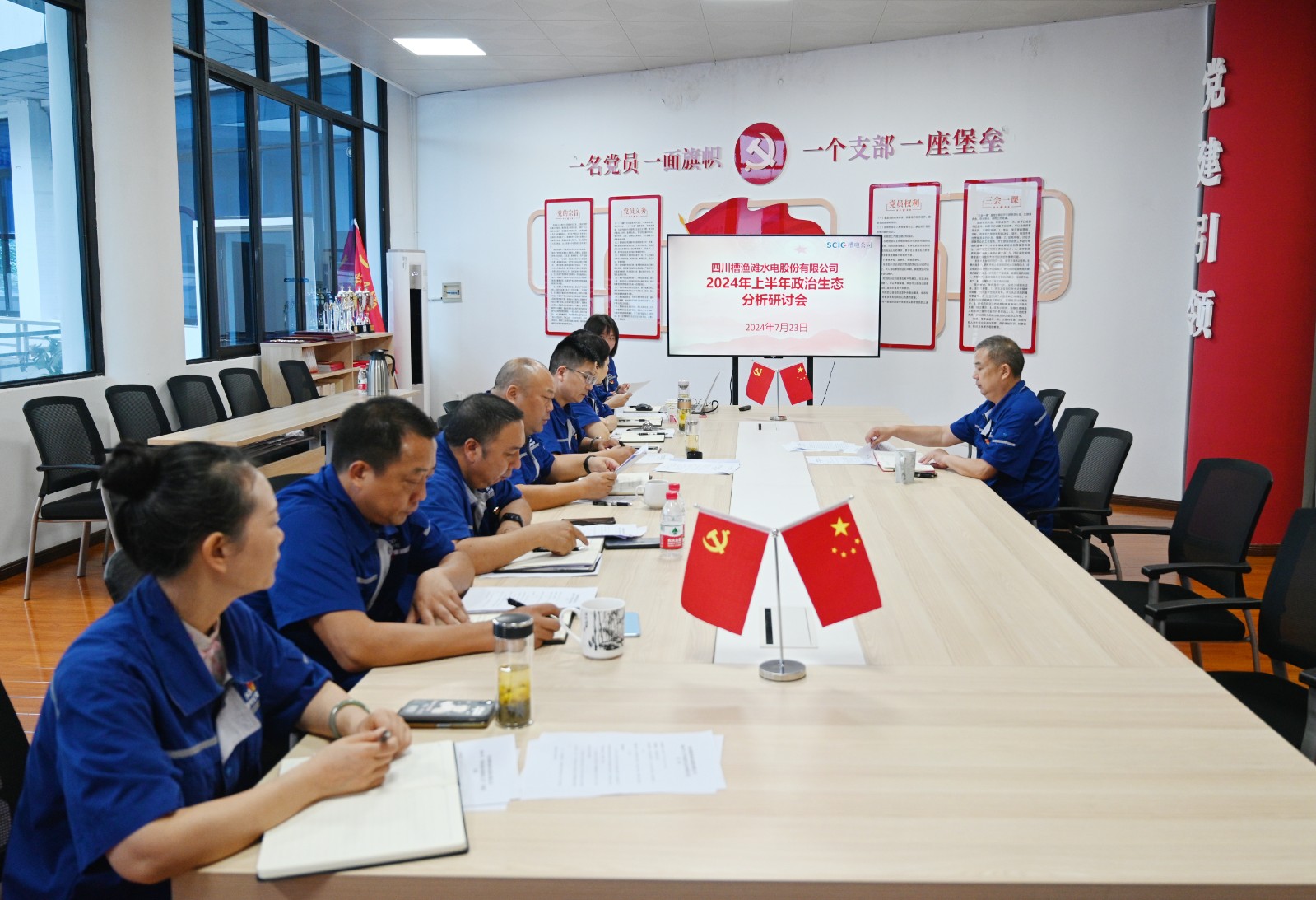 為推動全面從嚴治黨主體責任落實,努力營造風清氣正的政治生態,7月23日,槽漁灘公司黨委召開2024年上半年政治生態分析研判會,公司黨委書記、董事長何光富出席會議并講話,黨委副書記、工會主席陳堯主持,公司領導班子成員,紀檢工作部、黨群工作部相關人員參加會議。