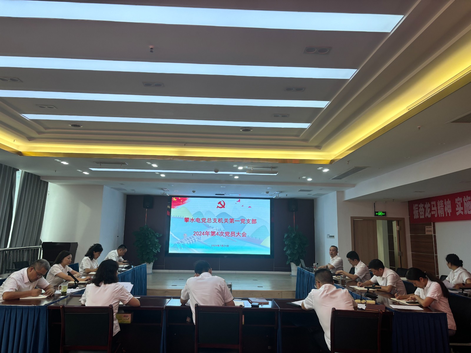 7月24日下午,攀水電黨總支機關第一黨支部在2620會議室召開2024年第4次黨員大會,會議由支部書記謝成銘主持,支部全體黨員、入黨積極分子參加會議,公司領導班子成員以普通黨員身份參加。