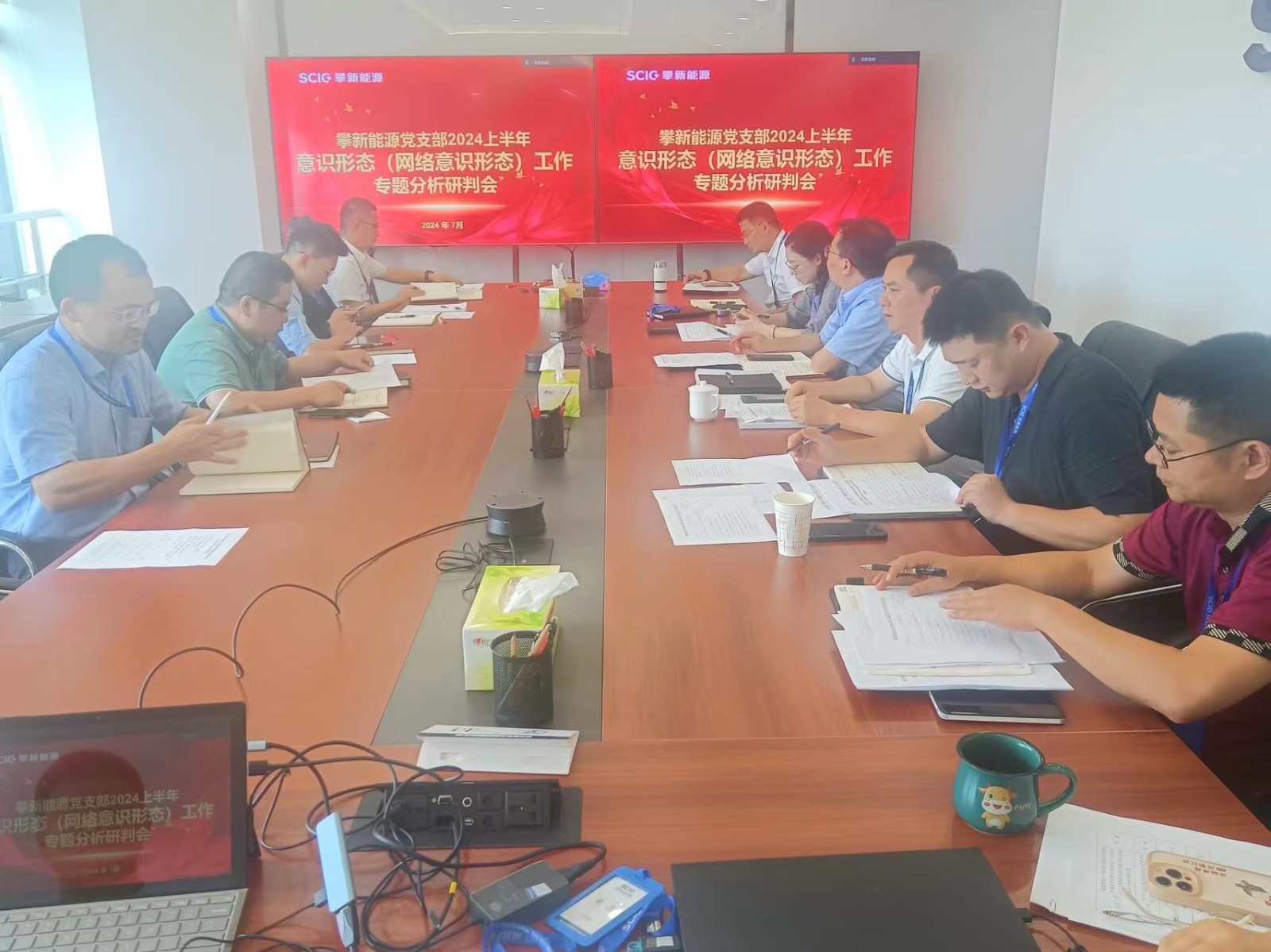 7月29日,攀新能源公司黨支部召開2024年上半年意識形態(網絡意識形態)工作專題分析研判會,公司黨委書記、董事長王行仁主持會議,全體支部黨員參加會議。