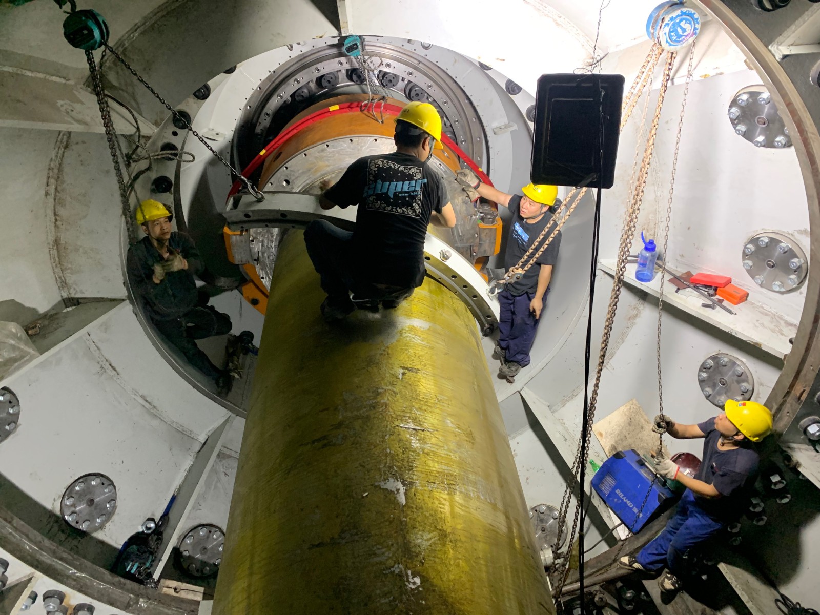 自2023年10月20日首臺機組管形座吊裝就位,經過9個月的建設安裝工期,首臺機組的管形座、導水機構、轉輪、主軸、定子、轉子、燈泡頭等關鍵部件均已精準安裝就位。在機電安裝過程中,建設者們克服了重重困難,從有限的地形條件到嚴苛的技術要求,從緊張的工期壓力到高標準的質量把控,他們始終堅守崗位,創新方式方法,采用先進技術,用汗水和智慧取得了機組安裝的重大進展。