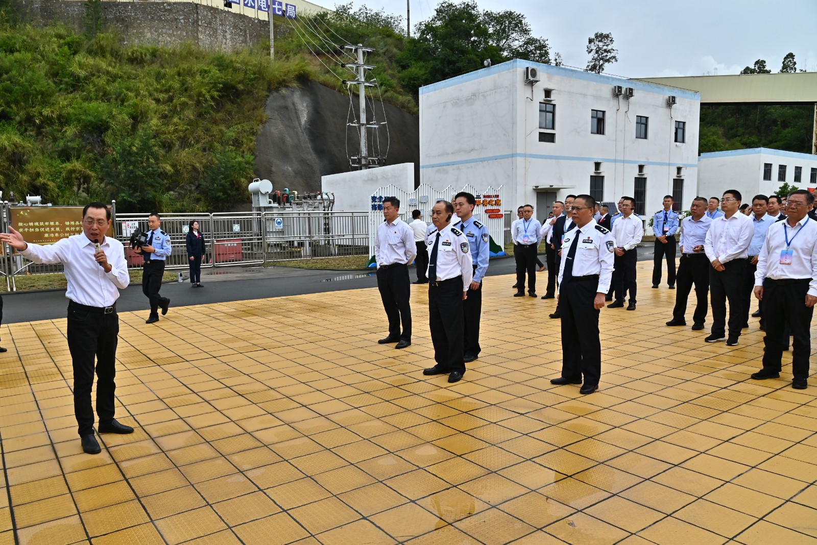 10月16日,攀枝花市公安機關服務保障經濟高質量發展現場會暨“警隨‘企’后”行動啟動儀式隆重舉行,市級相關部門、各縣(區)政府、公安機關、在攀國有企業和民營企業代表共計100余人參加會議,攀枝花市政府副市長、公安局局長周強帶隊到銀江水電站及重大項目警長辦公室現場調研,川投能源副總經理、攀水電公司黨總支書記、董事長徐孝剛參加活動。