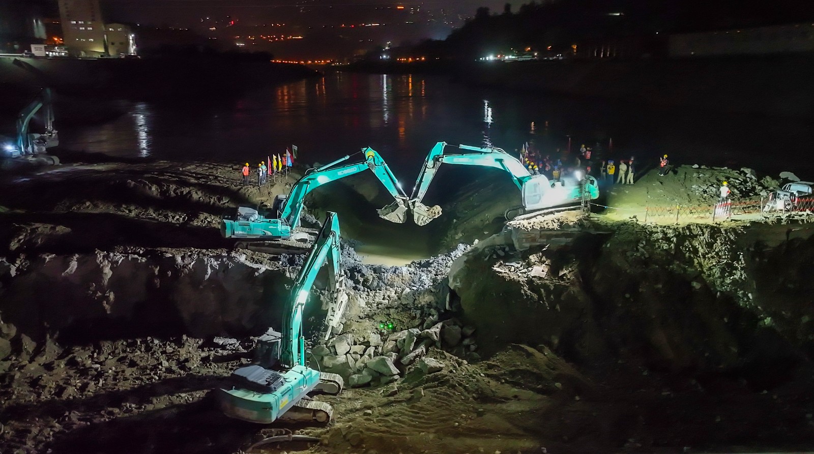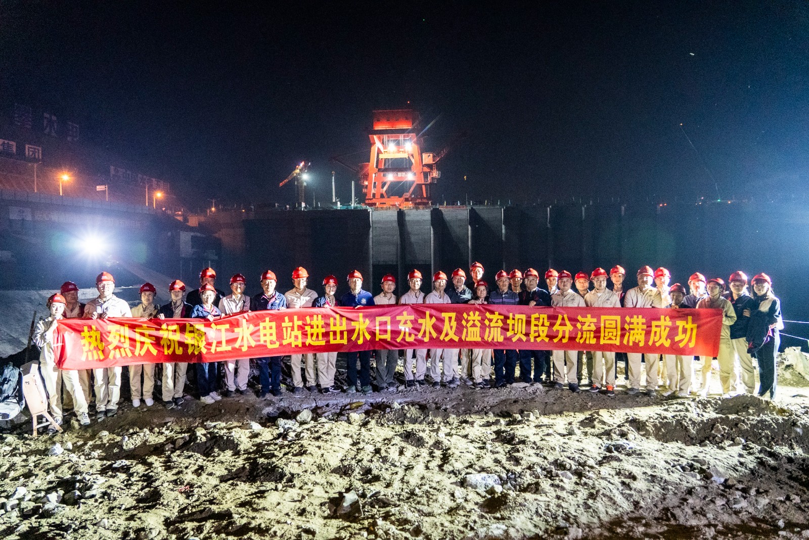 金秋十月,川投能源銀江水電站工程建設(shè)“進(jìn)度條”持續(xù)刷新。10月25日晚上,隨著川投能源副總經(jīng)理、導(dǎo)流明渠截流指揮長徐孝剛一聲令下,十余臺挖掘機(jī)在二期上游圍堰右岸進(jìn)行破口開挖,奔騰的金沙江水隨即涌入主河床廠房與溢流壩上游,充水平壓后江水經(jīng)溢流壩段流向下游,銀江水電站成功實(shí)現(xiàn)分流。這一重要進(jìn)展為按期完成導(dǎo)流明渠截流打下堅(jiān)實(shí)基礎(chǔ),也標(biāo)志著銀江水電站首臺機(jī)組投產(chǎn)發(fā)電正式進(jìn)入倒計(jì)時階段。