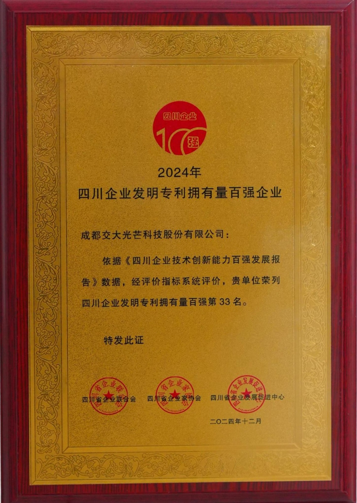 近日,以“技術(shù)創(chuàng)新榮耀四川”為主題的2024年四川企業(yè)技術(shù)創(chuàng)新發(fā)展大會(huì)在成都召開,大會(huì)發(fā)布《2024四川企業(yè)技術(shù)創(chuàng)新發(fā)展能力百?gòu)?qiáng)發(fā)展報(bào)告》,川投能源所屬交大光芒榮獲四川企業(yè)技術(shù)創(chuàng)新能力百?gòu)?qiáng)企業(yè)(第42位)和四川企業(yè)發(fā)明專利擁有量百?gòu)?qiáng)企業(yè)(第33位),這是交大光芒連續(xù)三年獲評(píng)“雙百?gòu)?qiáng)”企業(yè)認(rèn)定。大會(huì)還公布了49名企業(yè)技術(shù)創(chuàng)新突出貢獻(xiàn)人物,交大光芒首席專家、副總經(jīng)理陳奇志榮獲“2024年四川企業(yè)技術(shù)創(chuàng)新突出貢獻(xiàn)人物”稱號(hào)。