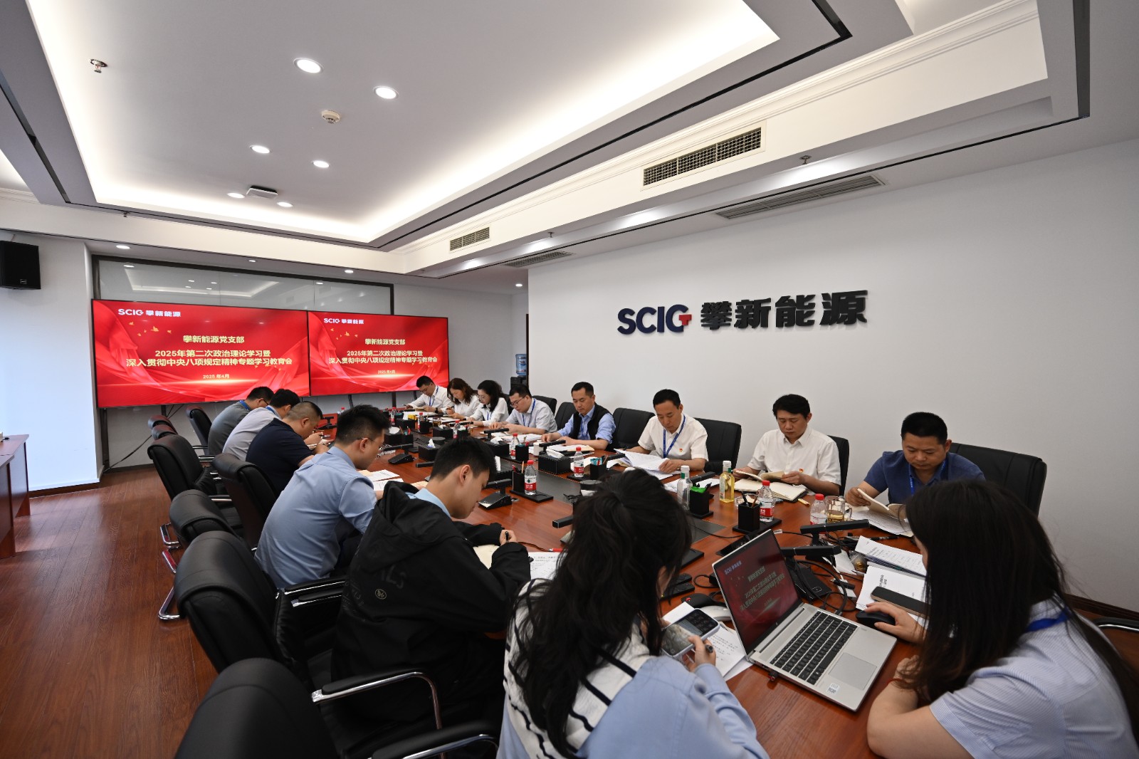 4月27日,攀新能源黨支部召開2025年第二次政治理論學習(擴大)會暨深入貫徹中央八項規定精神專題學習會,黨支部書記、董事長主持會議,領導班子成員及全體黨員參加。