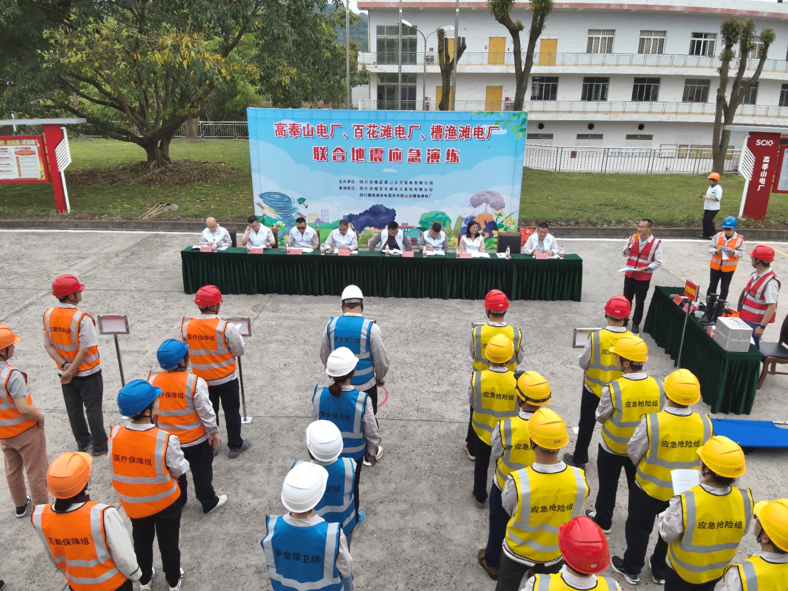 川投電力公司相關部門人員,高奉山電廠、百花灘電廠、槽漁灘電廠共計44人參加現場演練。此外,川投電力所屬天彭電力、玉田電廠、腳基坪電廠等也組織開展了防災減災應急演練。