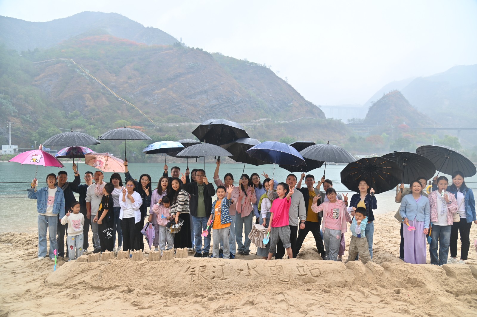 隨后,大家來到銀江湖,親身體驗銀江水電站蓄水后給攀枝花市民帶來的變化。淅淅瀝瀝的小雨絲毫澆不滅孩子們的熱情,他們用小鏟子、小桶挖來沙堆共同堆砌自己心中的“銀江水電站”。銀江湖畔不時傳出孩子們的笑聲和歡呼聲,生動詮釋了工程建設與生態保護的和諧共生。