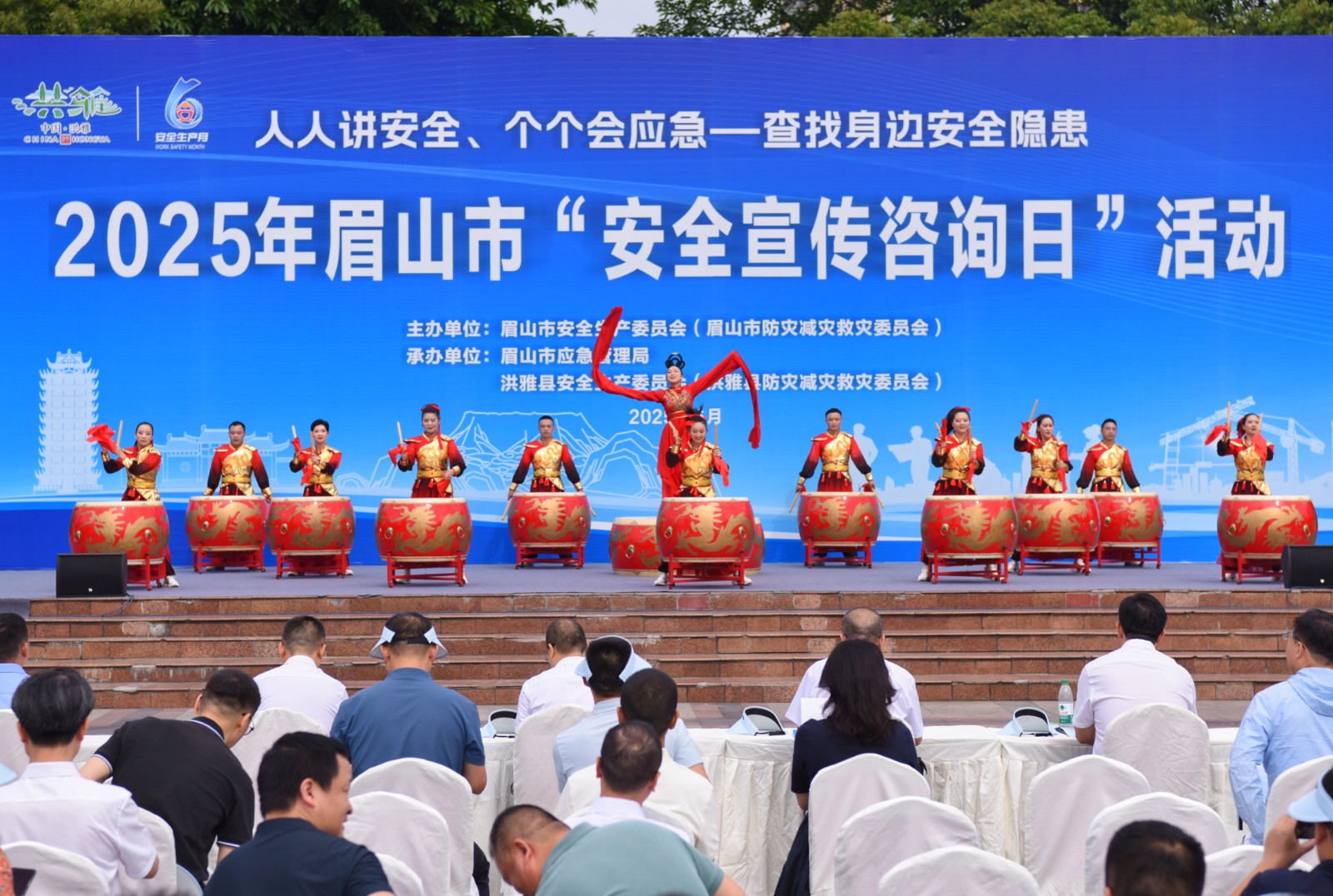 此次活動以“人人講安全、個個會應急——查找身邊安全隱患”為主題,吸引了眾多市民踴躍參與。活動當日,洪雅新廣場上人頭攢動,熱鬧非凡。大鼓舞隊的隊員們身著鮮艷的服裝,精神抖擻地登上舞臺。隨著音樂的響起,隊員們揮動手中的鼓槌,以磅礴的氣勢、整齊的節奏敲響大鼓。激昂的鼓聲瞬間點燃了現場氣氛,贏得了臺下觀眾的陣陣掌聲和歡呼聲。
