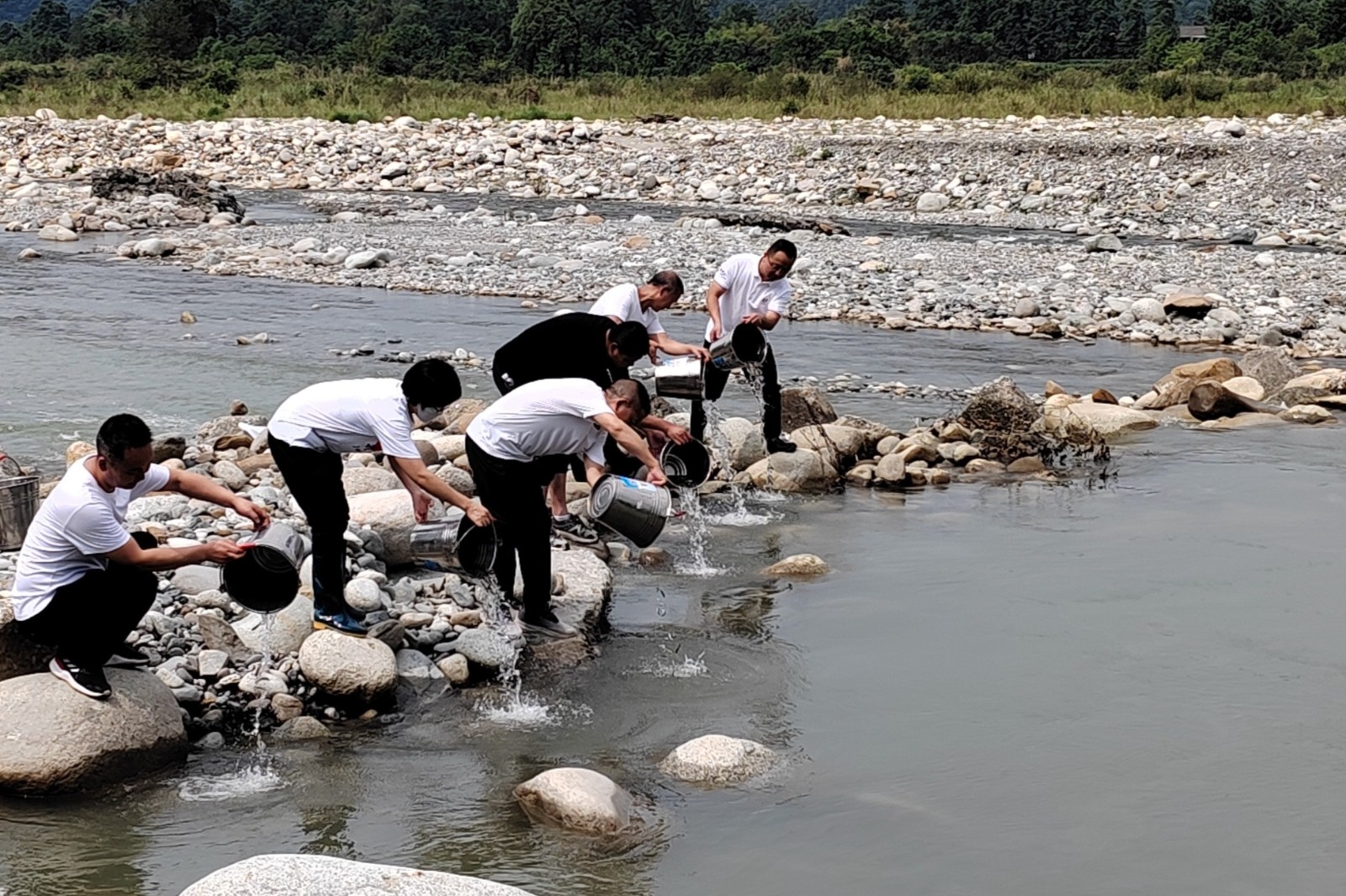 活動現場,在屬地政府、主管部門及群眾代表的見證和參與下,公司員工們將一尾尾活蹦亂跳的魚苗緩緩送入清澈的河水中,陽光下銀鱗閃爍的喜人場面引來岸邊群眾陣陣掌聲。本次活動投放的1萬尾齊口裂腹魚魚苗為湔江河道特有魚種,且按放流尺寸規格嚴格挑選確保其在自然水流環境中的適應生存能力,對于恢復所在水域水生生物資源,促進生態系統平衡具有重要的意義。