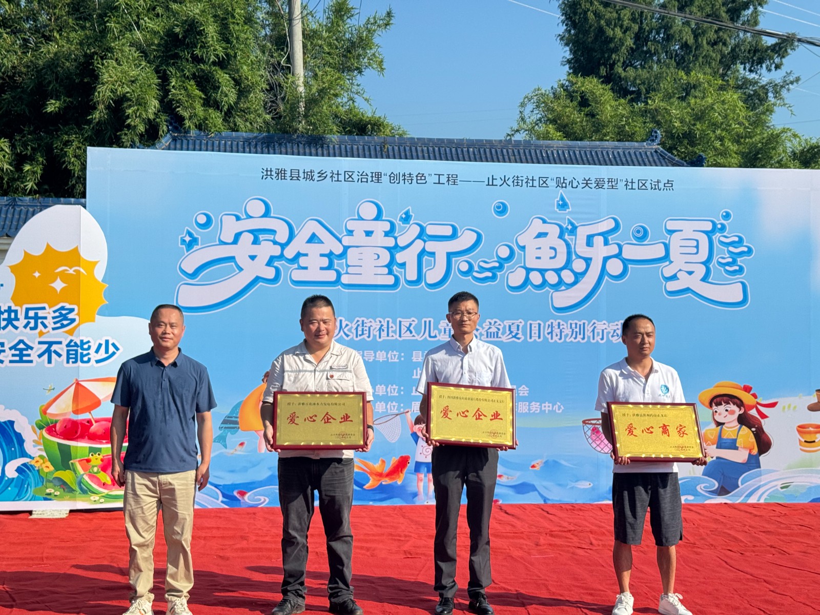 近日,止戈鎮(zhèn)止火街社區(qū)組織開(kāi)展“歡樂(lè)童行?魚(yú)樂(lè)一夏” 活動(dòng)。活動(dòng)中,止戈鎮(zhèn)止火街社區(qū)為四川洪雅百花灘水力發(fā)電有限公司授予“愛(ài)心企業(yè)”榮譽(yù)稱(chēng)號(hào)。
