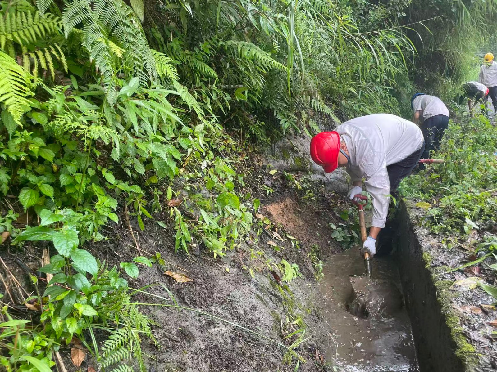 在暴雨預(yù)警拉響的第一時間,這支黨員先鋒隊就踏上了巡查征程。當(dāng)發(fā)現(xiàn)排水溝淤積隱患時,副廠長、老黨員張坤祥二話不說,就跳進(jìn)了滿是淤泥的排水溝進(jìn)行清淤,他說:“淤泥增加1厘米,防汛壓力就重1分!”他的話語樸實無華,卻道出了一名共產(chǎn)黨員的責(zé)任與擔(dān)當(dāng)。暴雨如注時,值守人員頂著傾盆大雨沖進(jìn)廠房,在電閃雷鳴中對關(guān)鍵設(shè)備進(jìn)行雨中特巡,雨水順著安全帽檐流進(jìn)衣領(lǐng),浸透了工作服,卻澆不滅他們守護(hù)機(jī)組安全的堅定信念。他們用沾滿淤泥的雨靴和浸透雨水的工裝,在防汛一線筑起了一道堅不可摧的“紅色堤壩”。截至目前,腳基坪電廠累計開展12次雨前、雨中、雨后特巡,清理淤積點13次。