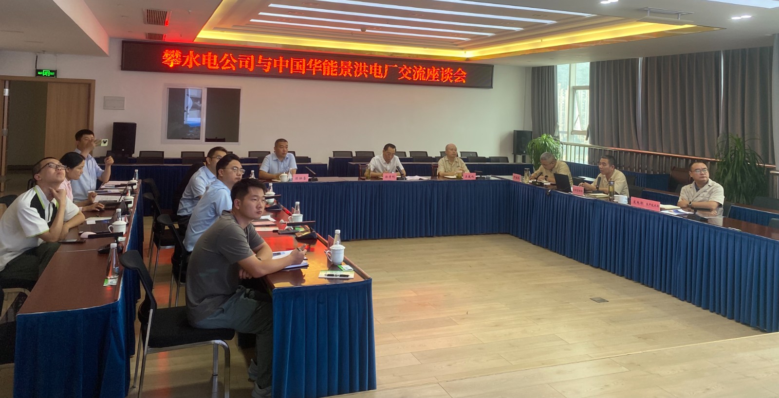 參觀結束后,雙方在公司會議室舉行了座談交流會,攀水電公司系統介紹了銀江水電站機組及主要設備選型、科研項目推進和電站投產運行等方面的情況與實踐經驗。座談期間,雙方圍繞貫流式機組運維管理、技術創新與工程實踐等議題充分交換了意見,同時景洪電廠方面結合參觀過程中遇到的實際困惑,以及在自身電廠建設中出現的具體問題,如復雜地質條件下的基礎處理、汛期施工組織、大型設備吊裝等技術難點與我方開展了專項研討。