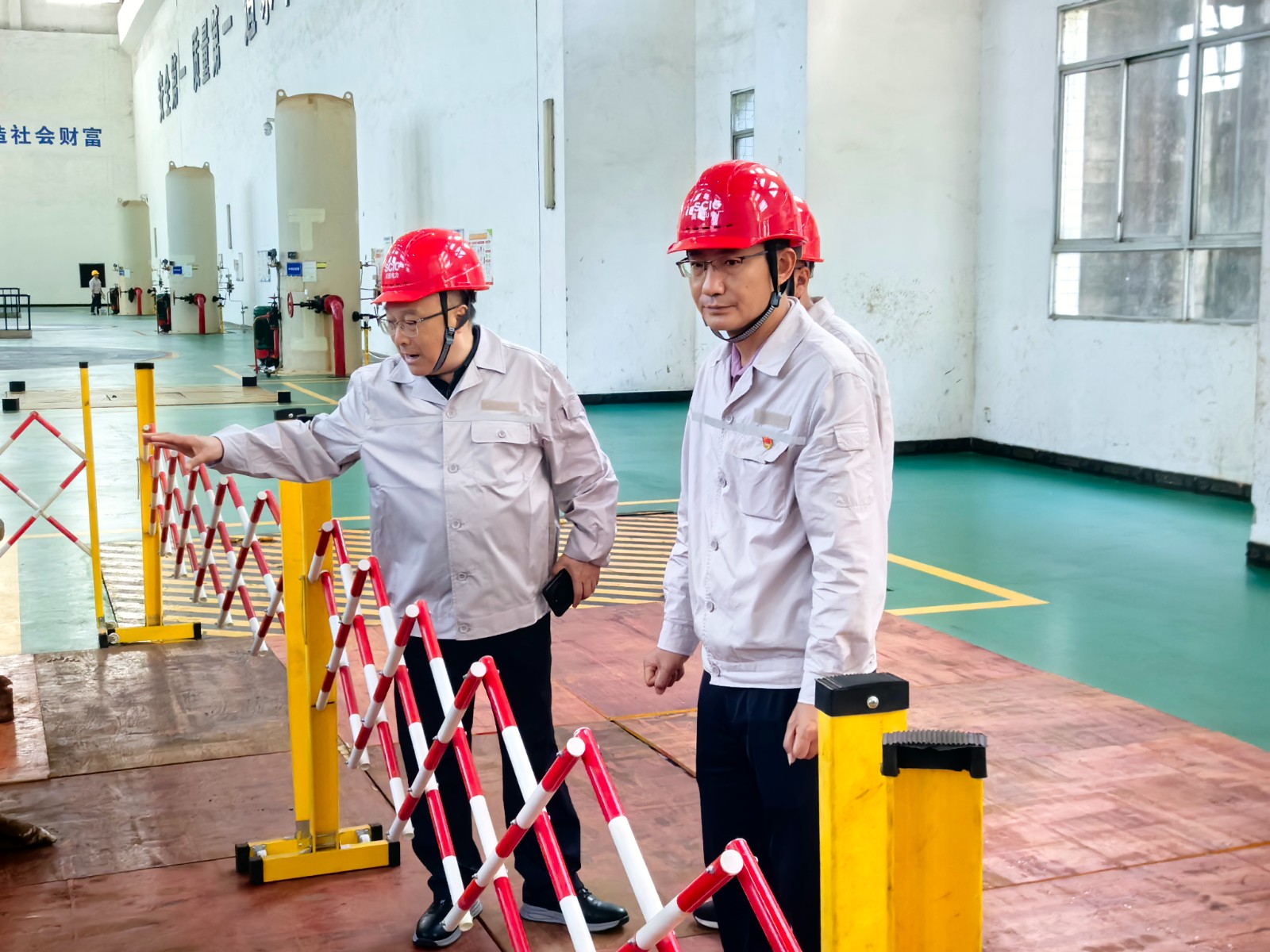 蔡承德一行深入生產一線,重點檢查了大壩、防汛設施運行狀況及發電機組、主變壓器等核心設備工況,詳細核查了設備巡檢記錄、隱患治理臺賬和應急預案等管理資料,并實地督導110KV出線間隔等關鍵設施的安全防護措施落實情況。在檢查過程中,蔡承德詳細詢問了各電廠在“雙節”期間的保供方案、人員值班安排及應急物資儲備情況,對各電廠前期開展的設備隱患整改工作給予肯定。