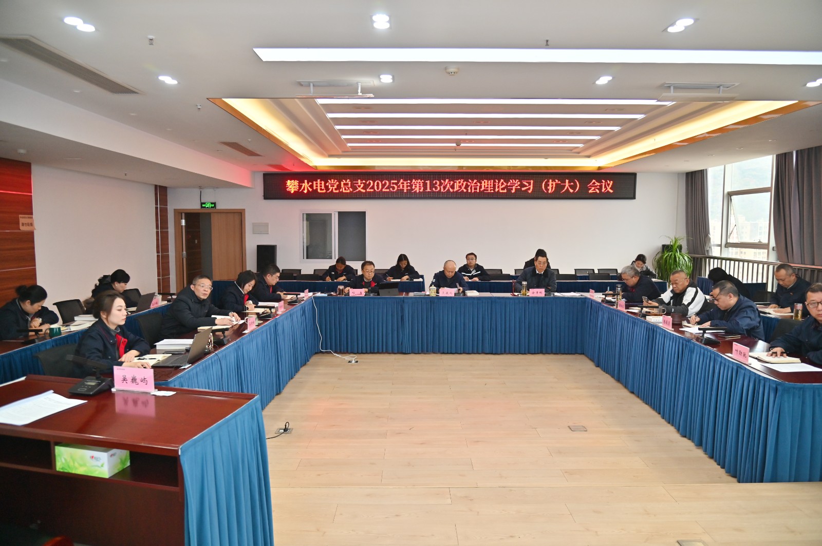 12月25日,攀水電公司黨總支組織召開了2025年第13次政治理論學習(擴大)會,會議由公司黨總支副書記、總經理吳巍嶼主持,黨總支政治理論學習會成員、全體中干、統戰對象、入黨積極分子共計20余人參加。