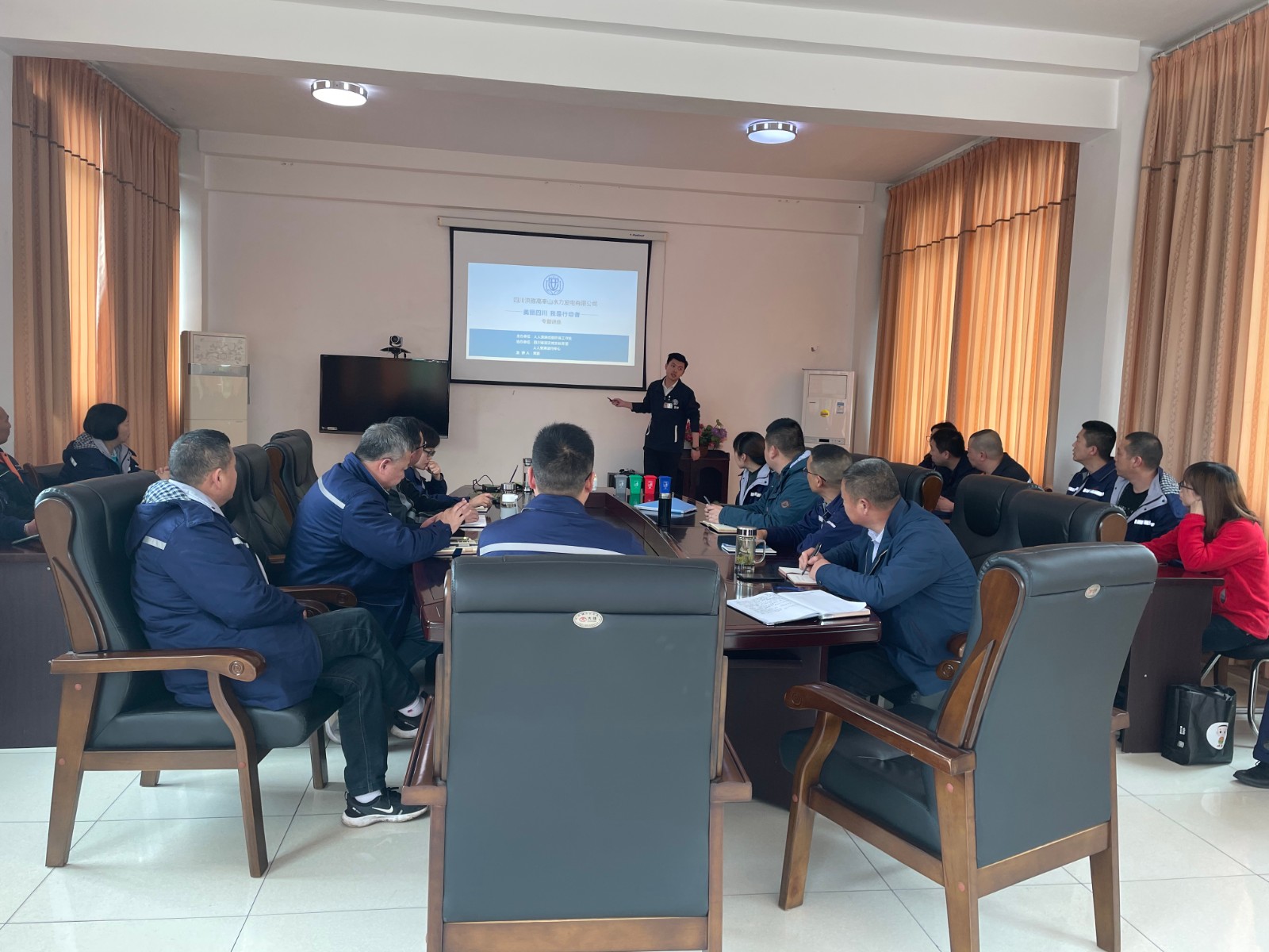 此次職工培訓特邀人人安康公益服務中心宣教科的老師主講,普及了健康環保理論知識和環保法律法規,四川省生活垃圾分類的管理辦法、單位個人如何正確進行垃圾分類以及環境污染與健康飲食飲水知識等相關內容。針對電站員工關于部分生活垃圾如何分類的困惑,老師結合生活實際,給大家一一作了講解。