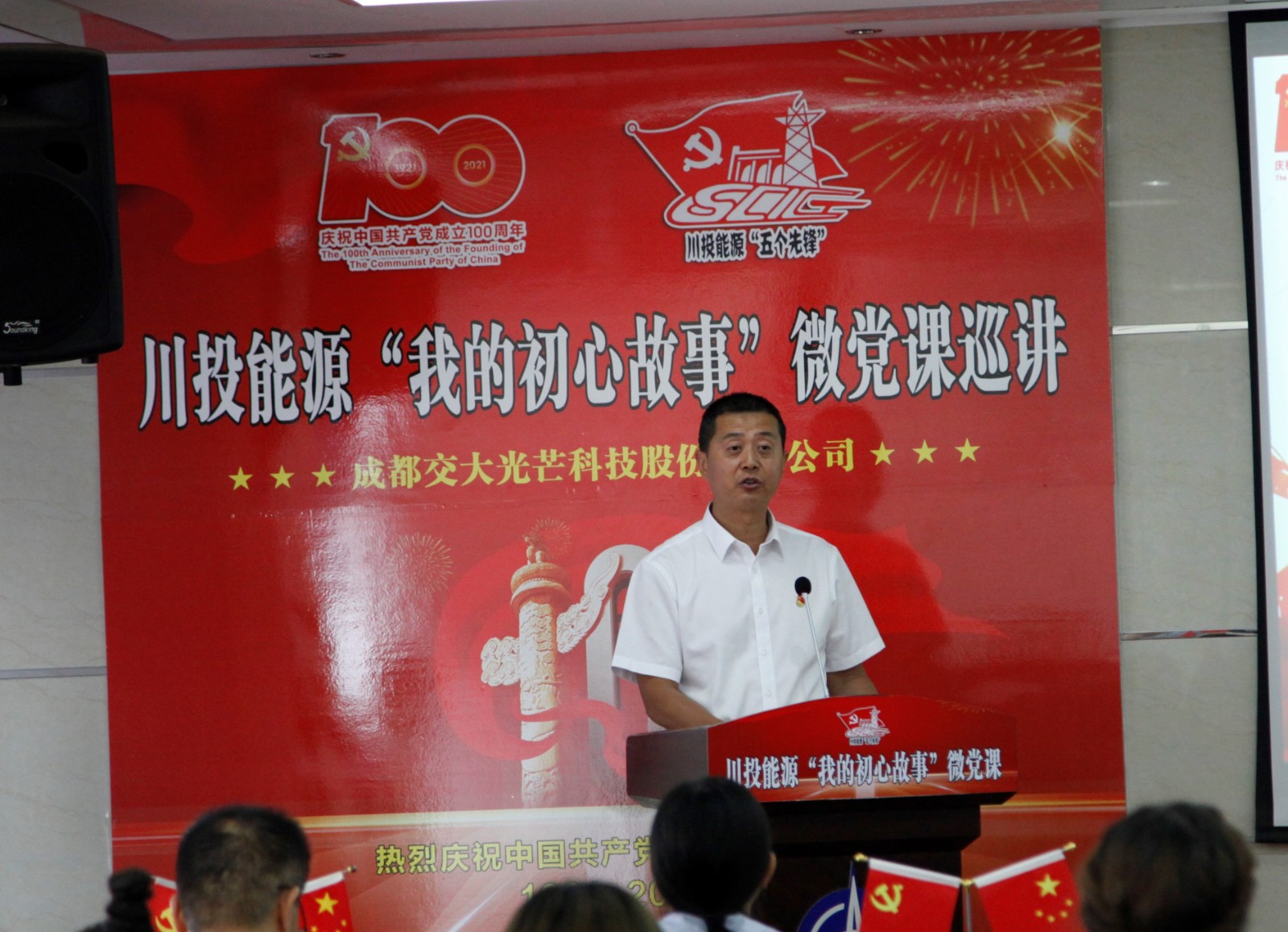 在全黨深入開展黨史學(xué)習(xí)教育之際,5月25日,川投能源“我的初心故事”微黨課巡講團(tuán)走進(jìn)交大光芒。微黨課巡講團(tuán)由能源本部、天彭電力、槽漁灘公司、交大光芒、川投電力和攀水電公司選派的6名優(yōu)秀黨員代表組成。川投能源黨委副書記、工會(huì)主席楊超龍,交大光芒黨總支書記、總經(jīng)理劉成輝和交大光芒黨員、員工代表30余人參加本次活動(dòng)。
