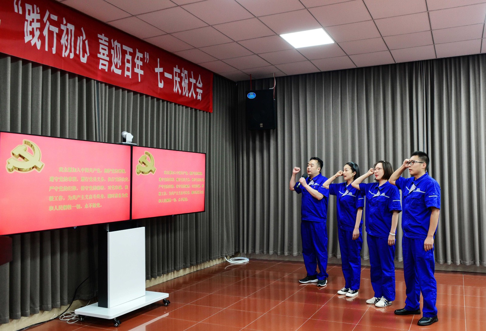 慶祝大會在雄壯的國歌聲中正式開始。大會首先由公司黨委書記、董事長楊濤帶領三名新黨員在鮮紅的黨旗下進行莊嚴的入黨宣誓,參會的全體黨員也和新黨員一起重溫了入黨誓詞。時刻提醒我們要始終保持共產黨員不忘初心、牢記使命的優秀品質。
