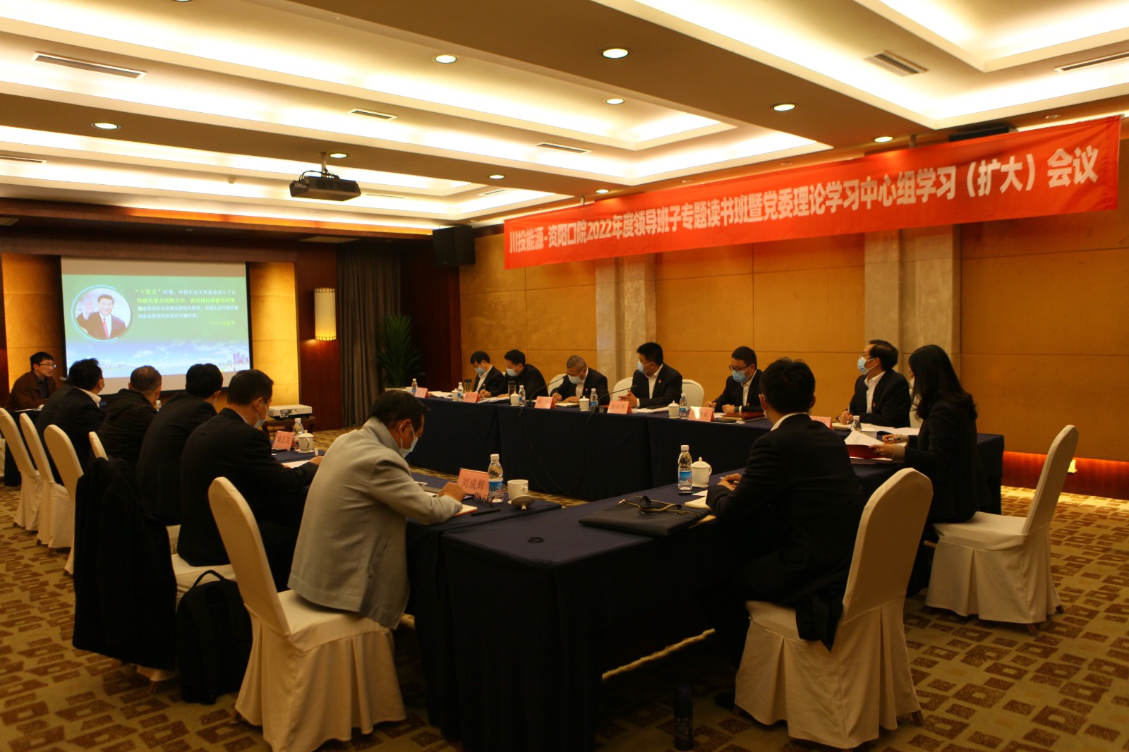 培訓期間,川投能源黨委、資陽口院黨委聯合召開2022年度領導班子專題讀書班暨黨委理論學習中心組學習(擴大)會議,特邀西南財經大學數字經濟研究中心副主任苗壯教授作輔導講座。苗壯教授以“聚焦雙碳目標,共謀綠色發展”為題,從國家政策、地方行動、企業應對等3個方面,結合具體案例作詳細講解,為能耗雙控政策下企業實現碳達峰碳中和目標中遠期規劃提供建議。讀書班成員紛紛圍繞“學習宣傳貫徹二十大精神,就雙碳戰略目標背景下川投能源如何實現高質量發展”以及“學習宣傳貫徹二十大精神,資陽口院如何著力辦好人民滿意的教育”兩個主題,交流學習心得,在自我領會與思想碰撞中不斷吃透思想精髓,進一步把握實踐要求。