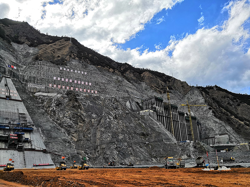 目前,正值兩河口電站工程建設(shè)的重要時期,到處都是熱火朝天的勞動畫面。上百家參建單位、2萬多名建設(shè)者揮灑“艱苦不怕吃苦、缺氧不缺精神”的豪邁情懷,克服“五高六大兩長”難點和高寒海拔惡劣自然環(huán)境、復(fù)雜的建設(shè)環(huán)境等不利條件,工程建設(shè)實現(xiàn)一個又一個里程碑目標。在高土石壩,上百臺推土機在工地上忙碌穿梭,建設(shè)者們忙碌的身影和機械的隆隆聲交織回蕩在高山峽谷中,這座世界第3高壩正日益成型;在兩岸巖壁上,為了在200層樓高的幾乎垂直的巖壁中固定15000根錨索,黨員帶頭沖鋒在前,硬是將一根根的錨索肩扛手提抬了上去;在地下廠房,建設(shè)者們克服潮濕昏暗、溫差變化大的不利條件,晝夜不停精心安裝碩大無比的發(fā)電裝置,工地上隨處可見一面面黨員突擊隊、青年突擊隊火紅的旗幟迎風(fēng)飄揚,成為一道道亮麗的風(fēng)景線。